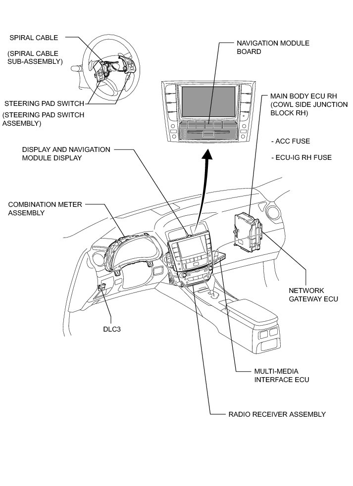 AUDIO / VIDEO: AUDIO AND VISUAL SYSTEM (w/o Navigation System with Multi-display): PARTS LOCATION