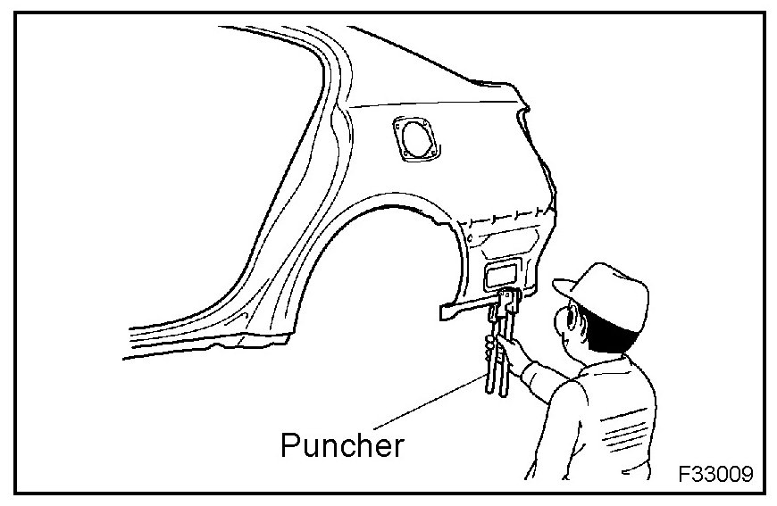 1. For areas where a spot welder cannot be used, use a puncher or drill to make holes for plug welding.