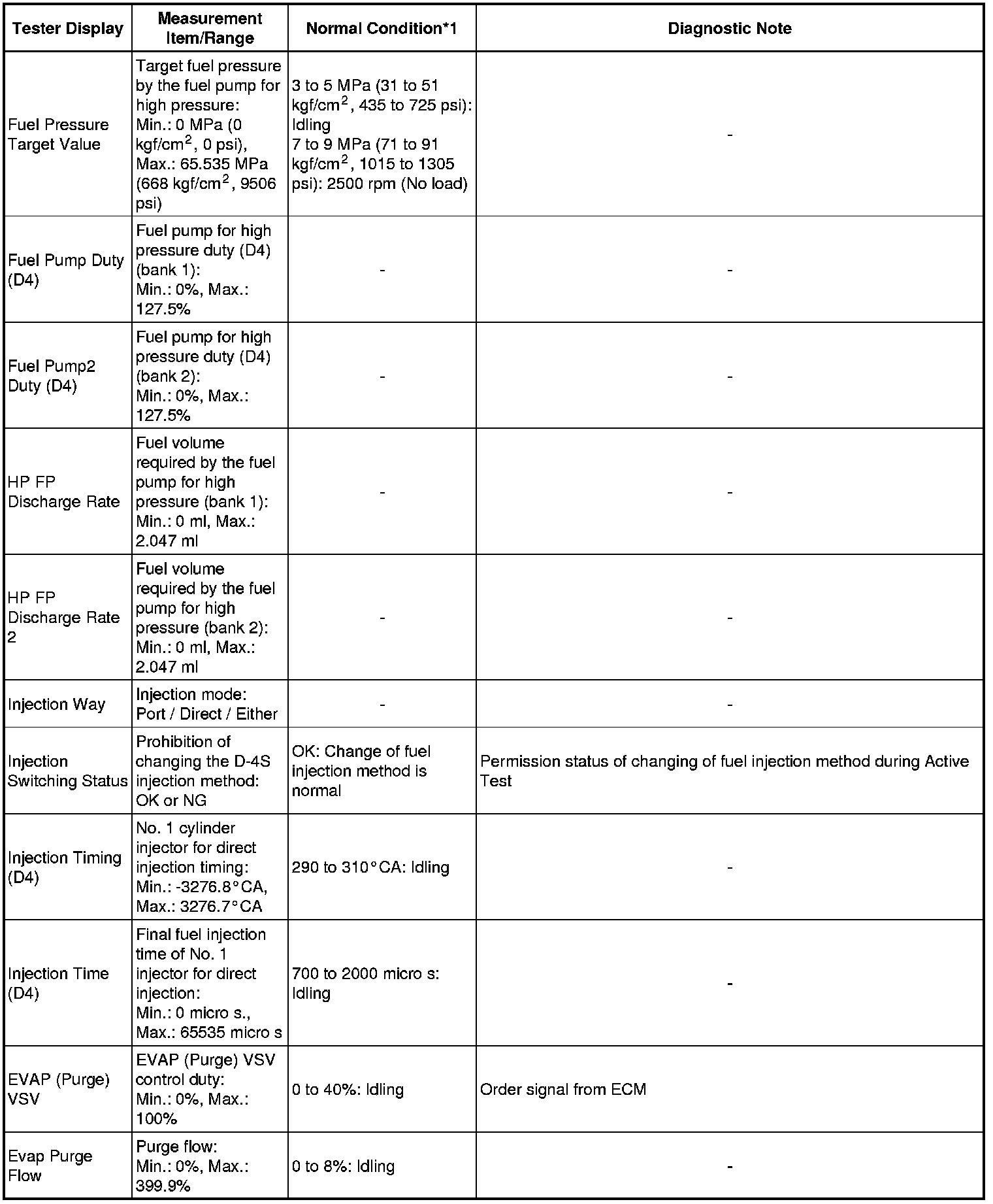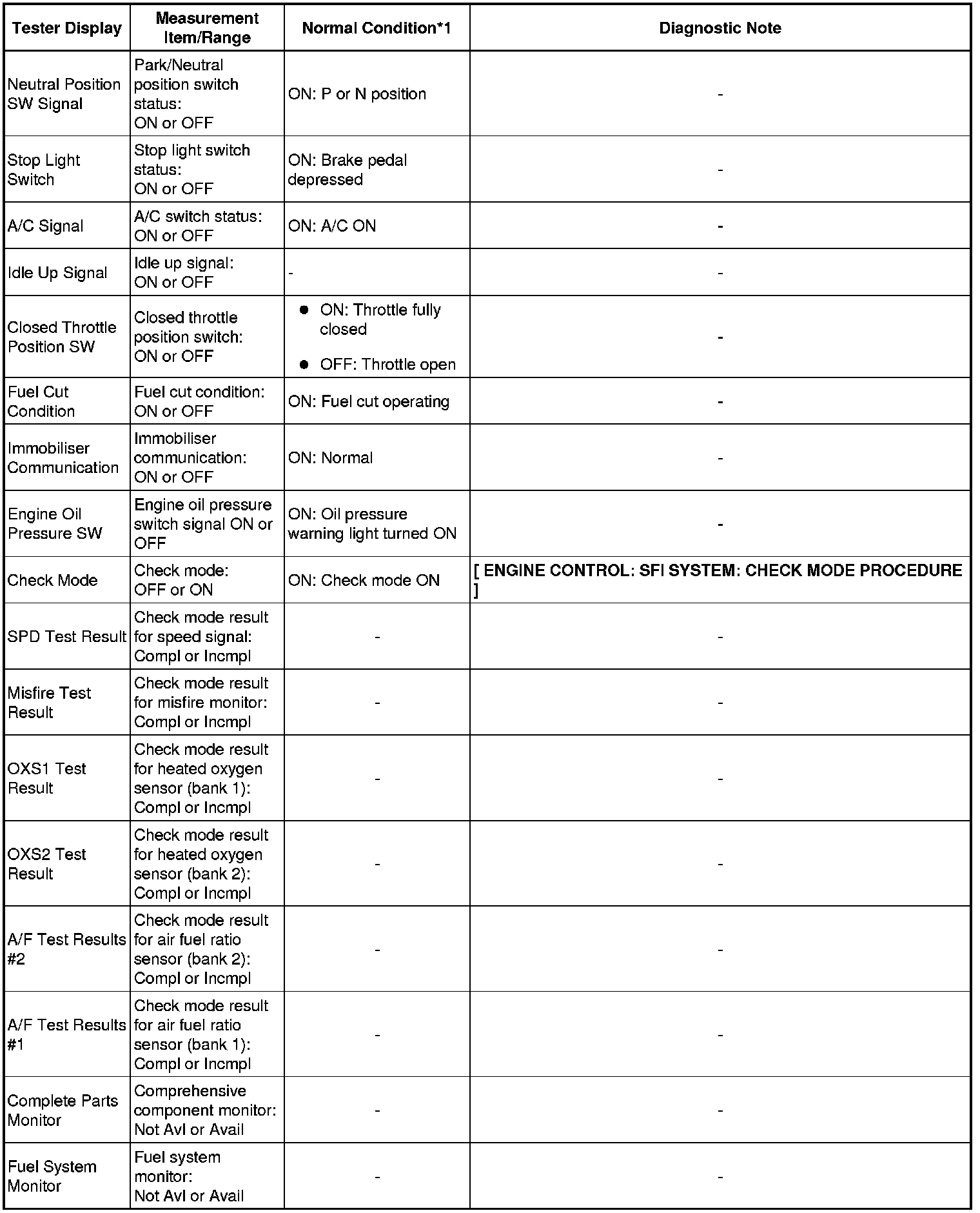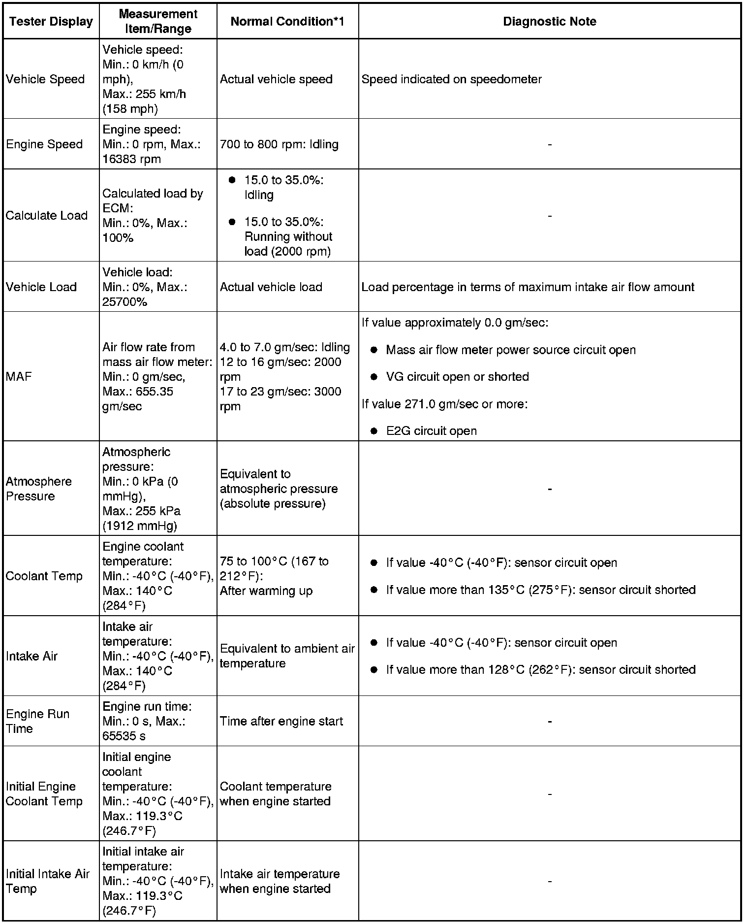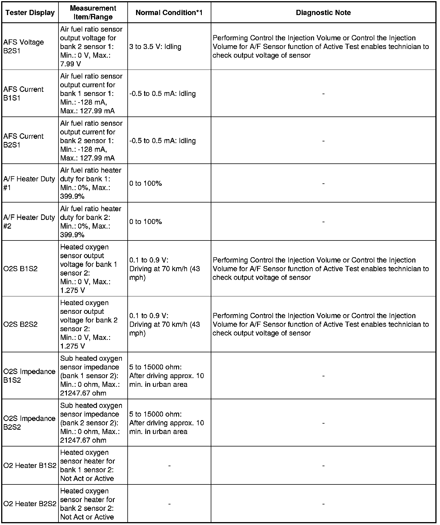 * *1: If no conditions are specified for "idling", the shift lever should be in N or P, and the A/C switch and all accessory switches should be OFF.