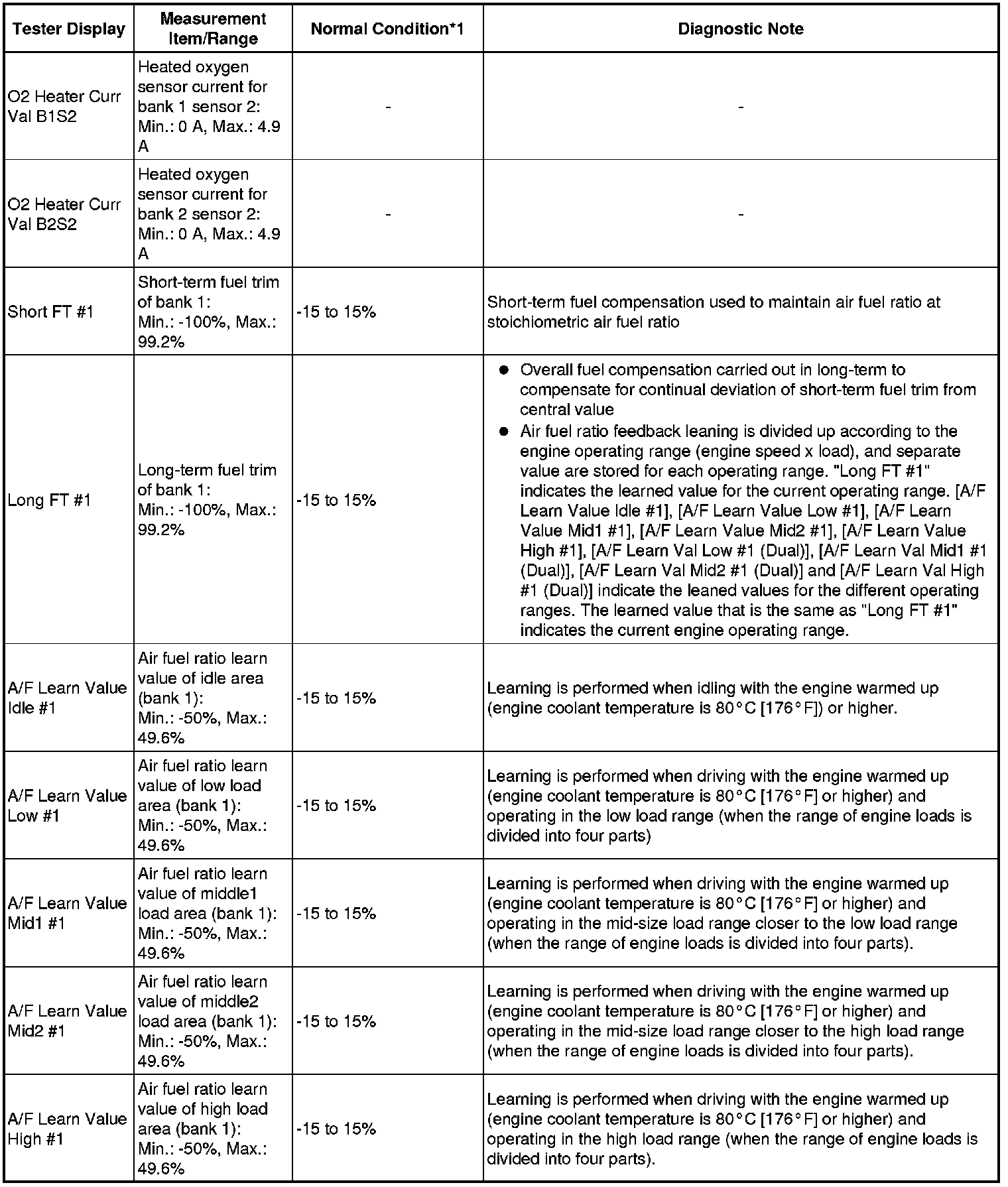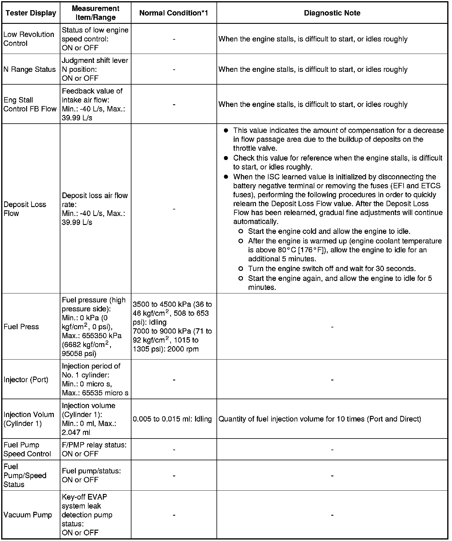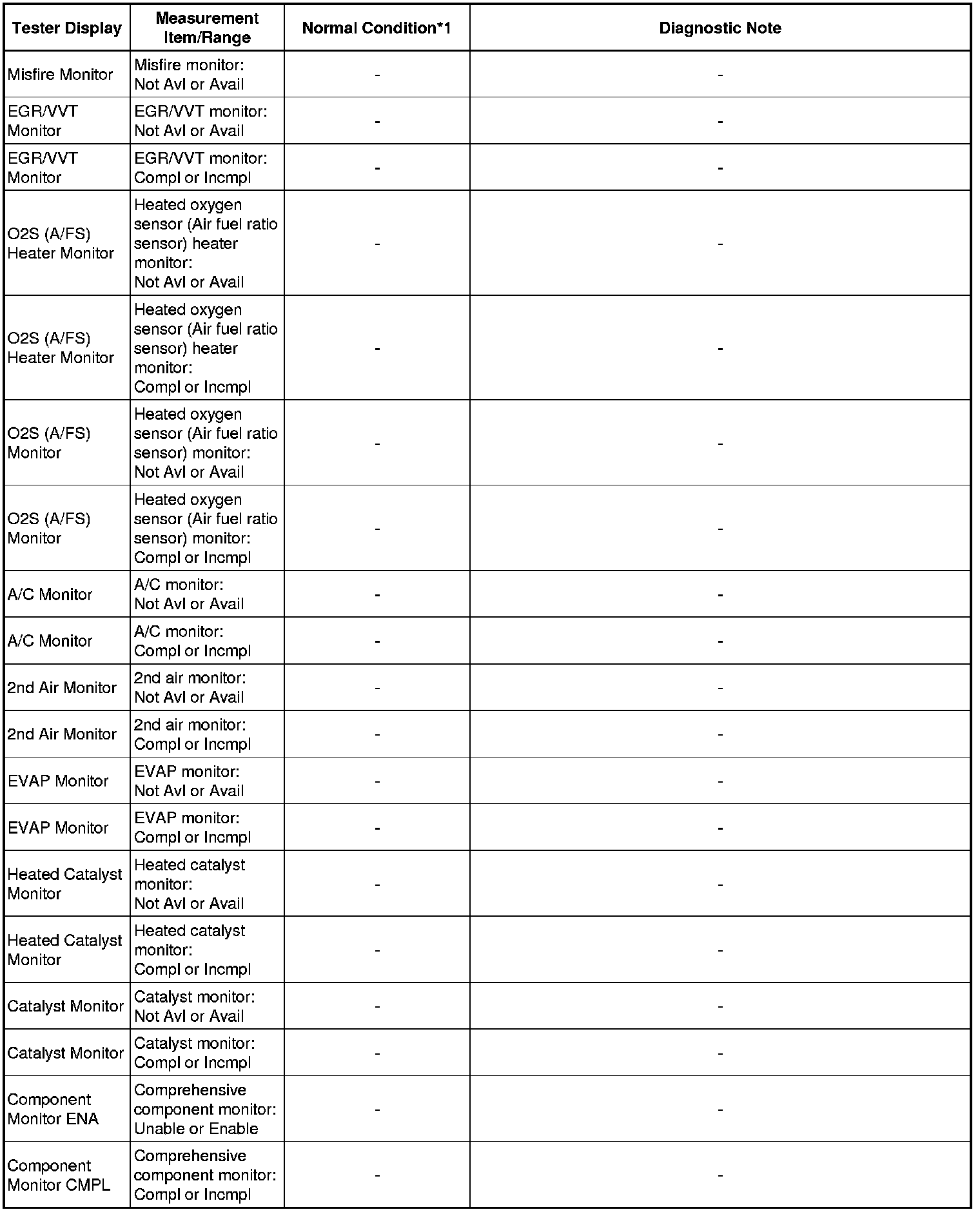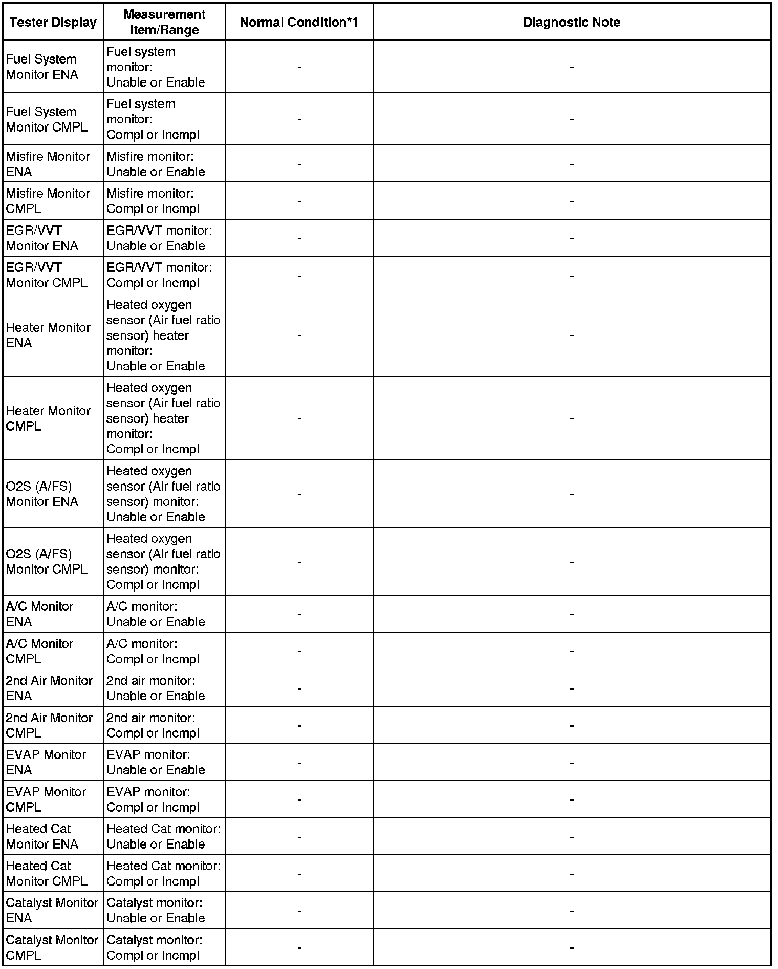 * *1: If no conditions are specified for "idling", the shift lever should be in N or P, and the A/C switch and all accessory switches should be OFF.