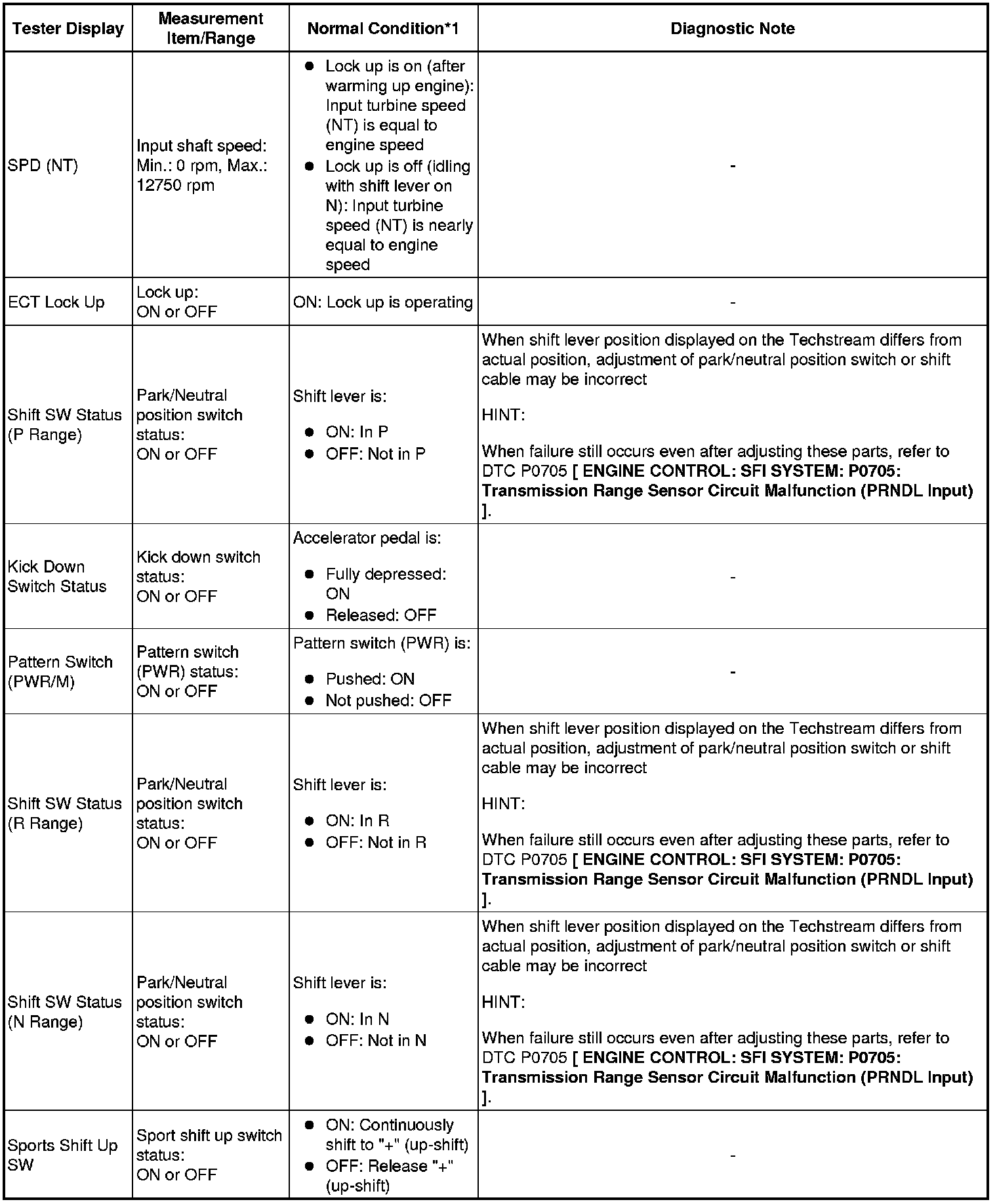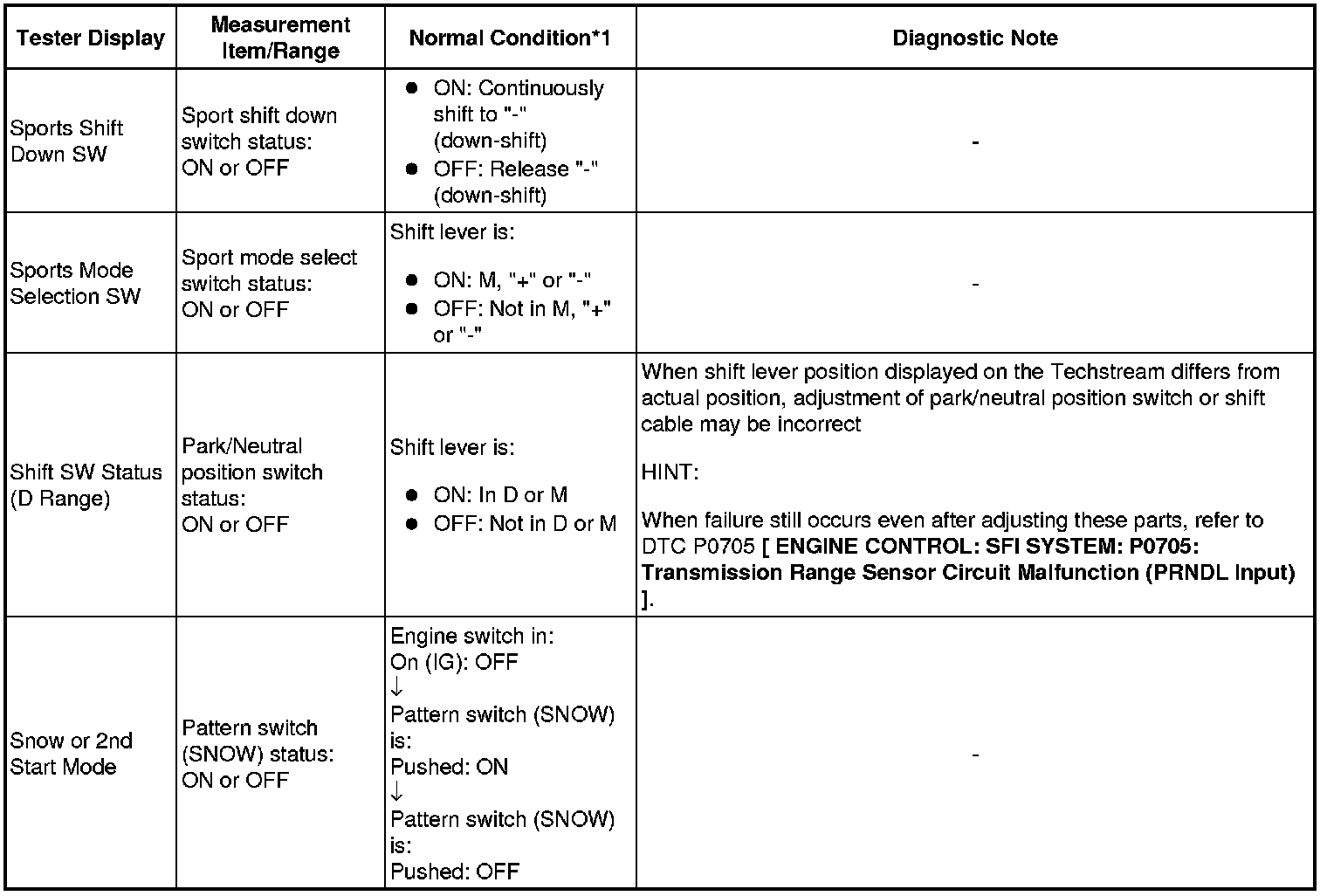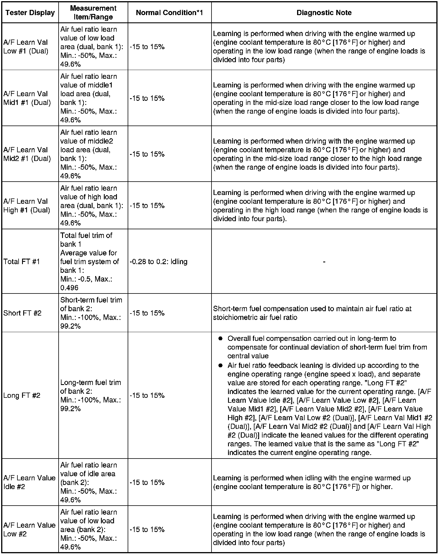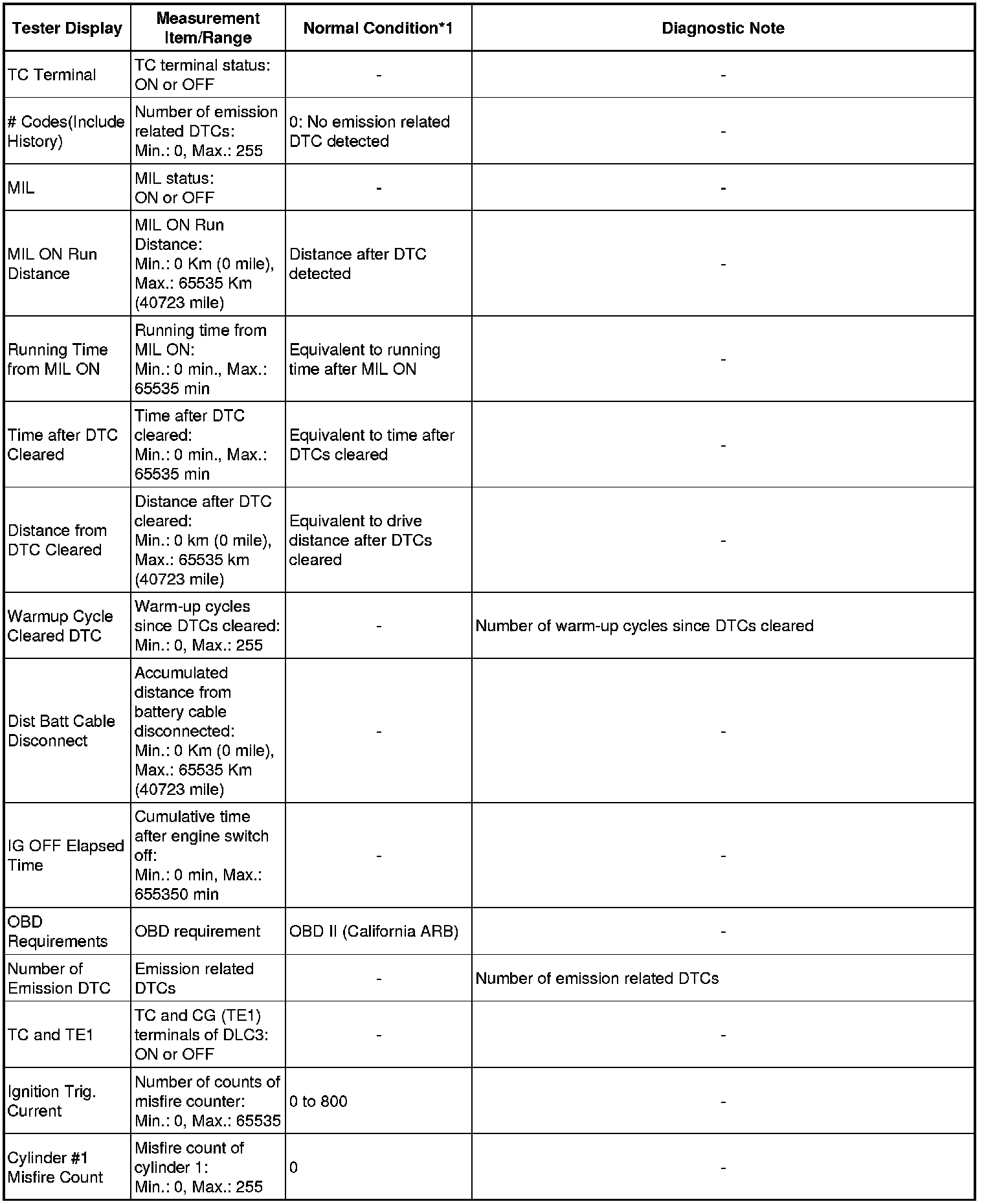 * *1: If no conditions are specified for "idling", the shift lever should be in N or P, and the A/C switch and all accessory switches should be OFF.