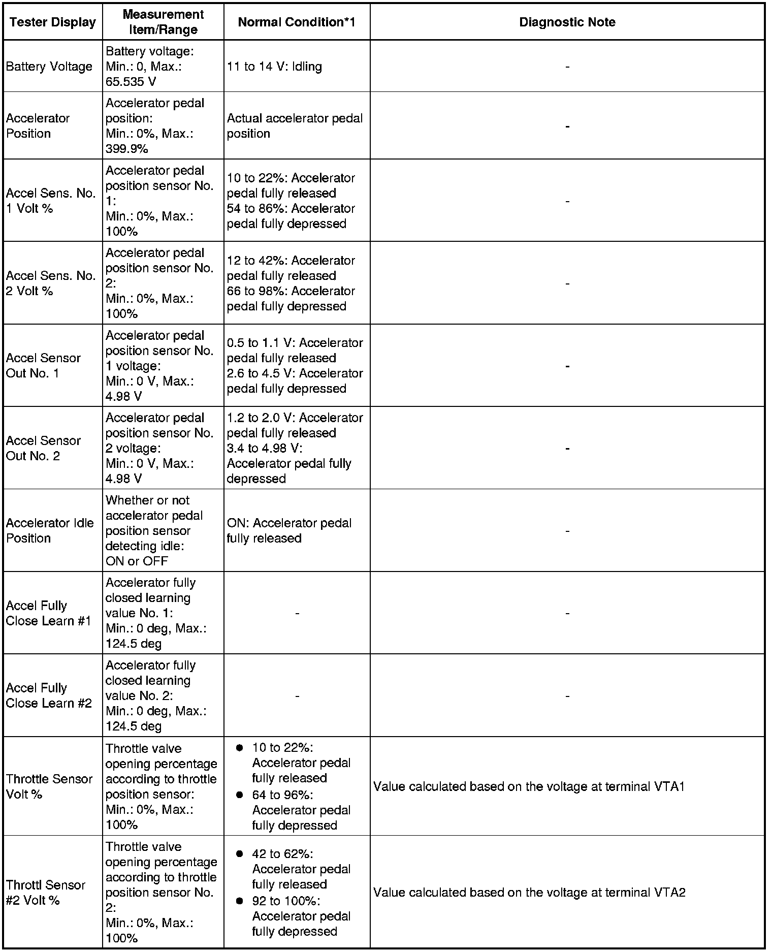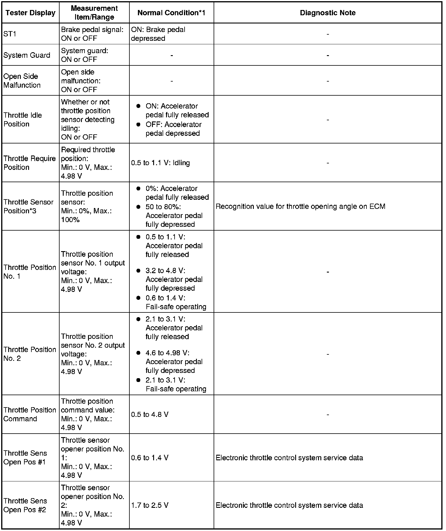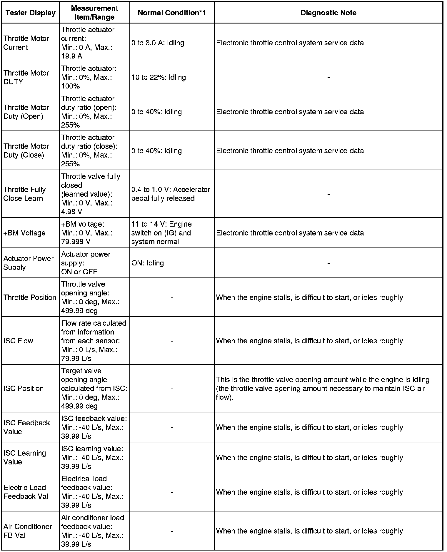 * *3: Excluding throttle valve opening percentage due to Idle Speed Control (ISC).