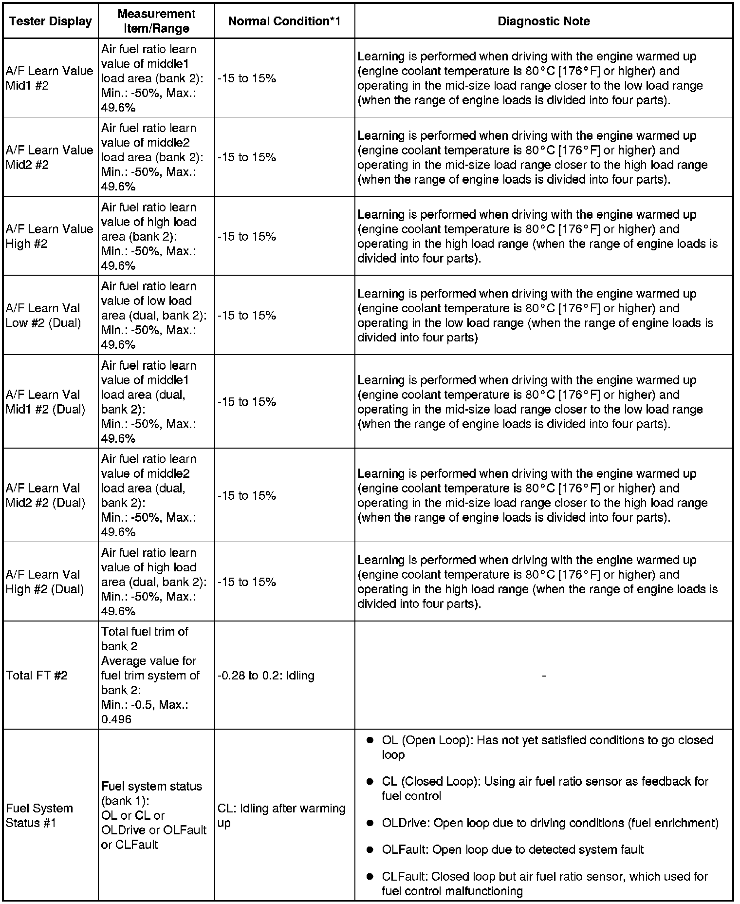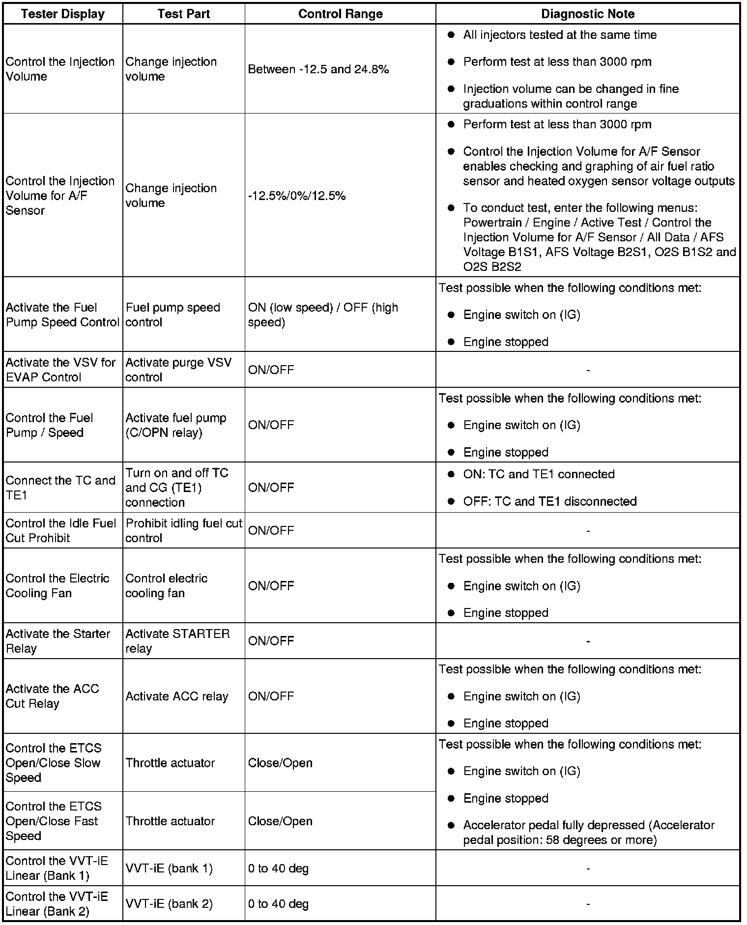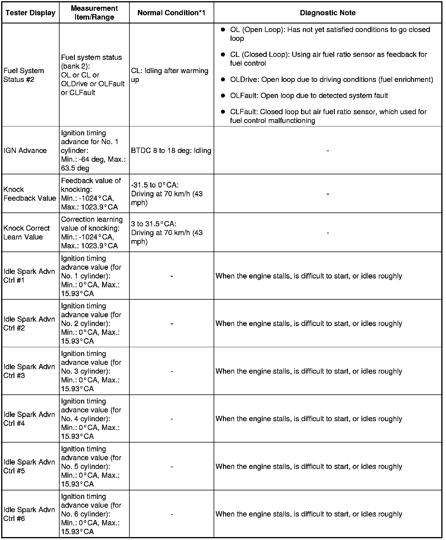 * *2: These Data List values are only displayed when performing the following Active Tests: Control the VVT-iE Linear (Bank 1), Control the VVT-iE Linear (Bank 2), Control the VVT Exhaust Linear (Bank 1) and Control the VVT Exhaust Linear (Bank 2). For other Active Tests, the Data List value will be 0.