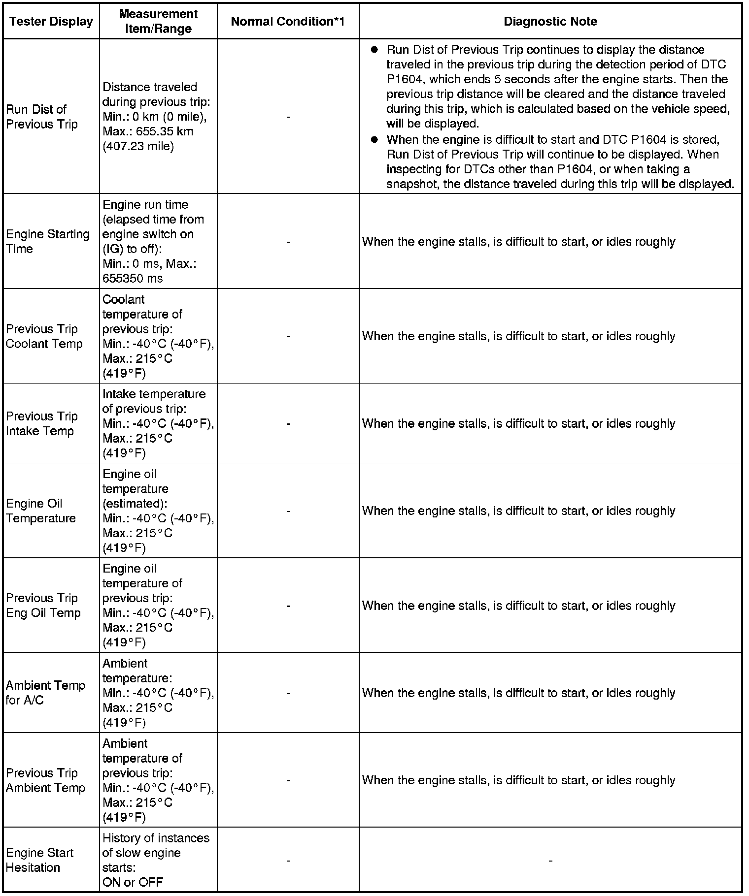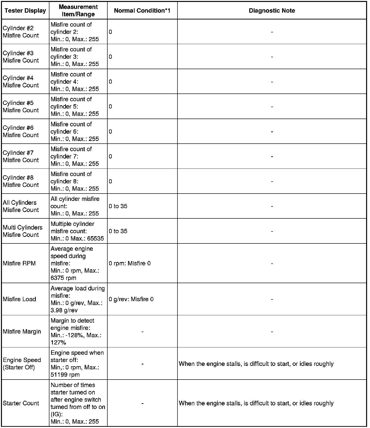 In the table below, the values listed under Normal Condition are reference only. Do not depend solely on these values when determining whether or not a part is faulty.