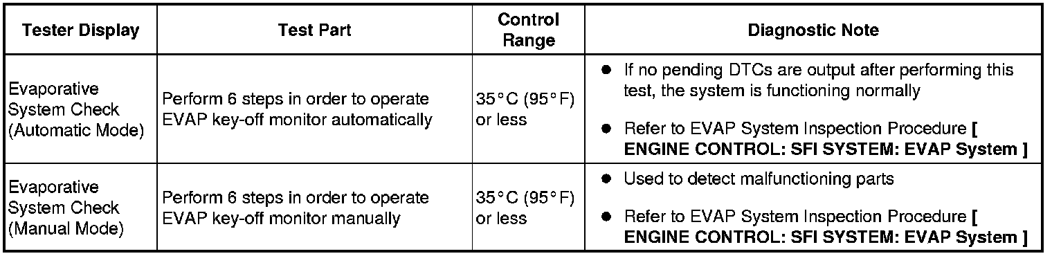(e) Perform the System Check by referring to the table below.