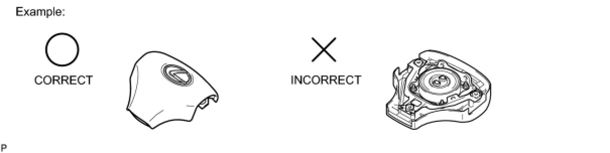 (1) Always place a removed or new steering pad surface upward as shown in the illustration. Placing the steering pad of the pad surface facing down could cause a serious accident if the airbag deploys. Also, do not place anything on top of the steering pad.