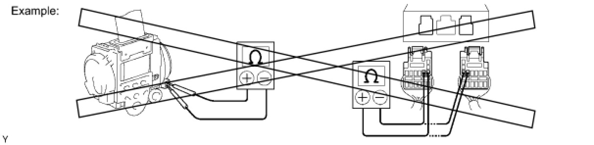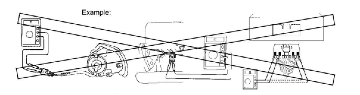 (6) When measuring the resistance between terminals of a wire connector, insert the tester probe carefully to prevent terminals from bending.
