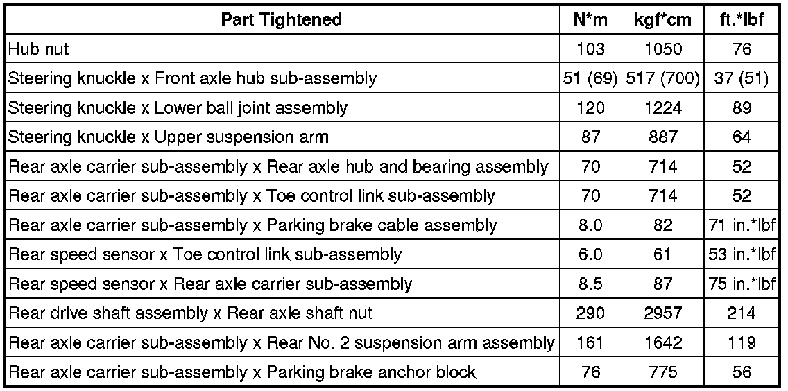 SPECIFICATIONS: AXLE AND DIFFERENTIAL: TORQUE SPECIFICATIONS