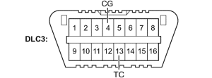 - Press and hold the tire pressure warning reset switch (satellite switch) until the tire pressure warning light blinks 3 times at one-second intervals and "PRESSURE INITIAL" is shown on the multi-information display. See Fig 1.NOTE: Initialization is usually completed in 2-3 minutes. If initialization is completed incorrectly, DTC 2177/77 is set after driving the vehicle about 20 minutes or more.NOTE: Initialization can be terminated by connecting terminals 13 (TC) and 4 (CG) of the DLC3. See Fig 2.