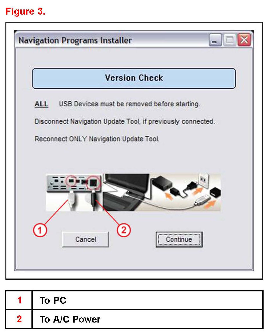 A. Make sure the USB cable is secured in both the PC and the Navigation Update Tool USB ports.
