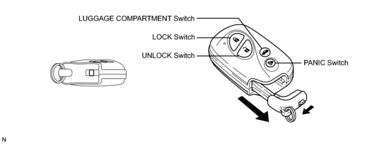Push the LOCK/UNLOCK/PANIC/LUGGAGE COMPARTMENT switch on the key to operate each function.