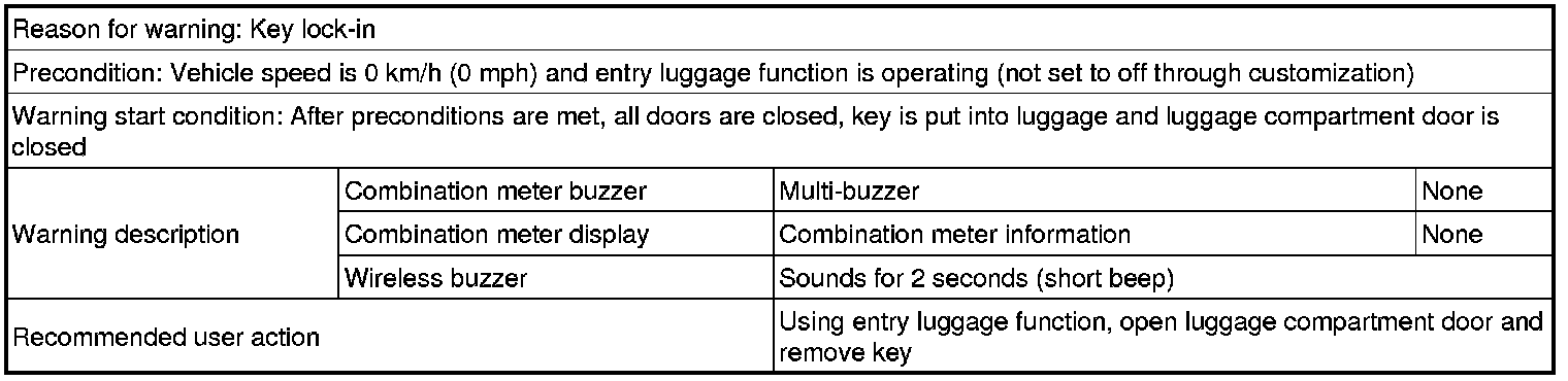 Key lock-in prevention function buzzer (for luggage compartment)