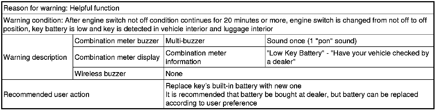 (1) Key with almost depleted battery is used to drive vehicle