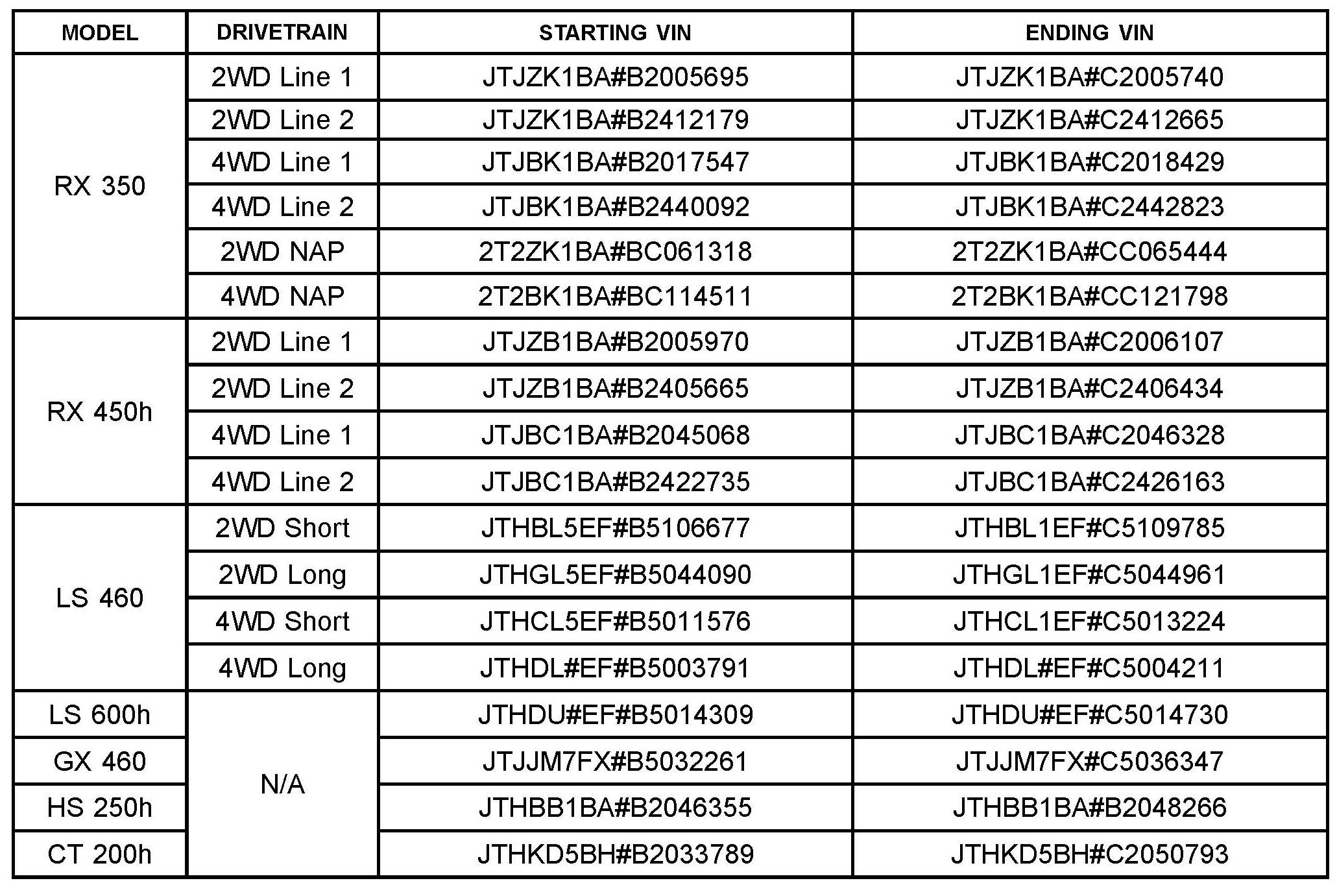 This TSB applies to vehicles produced AFTER the starting VINs and BEFORE the ending VINs shown.