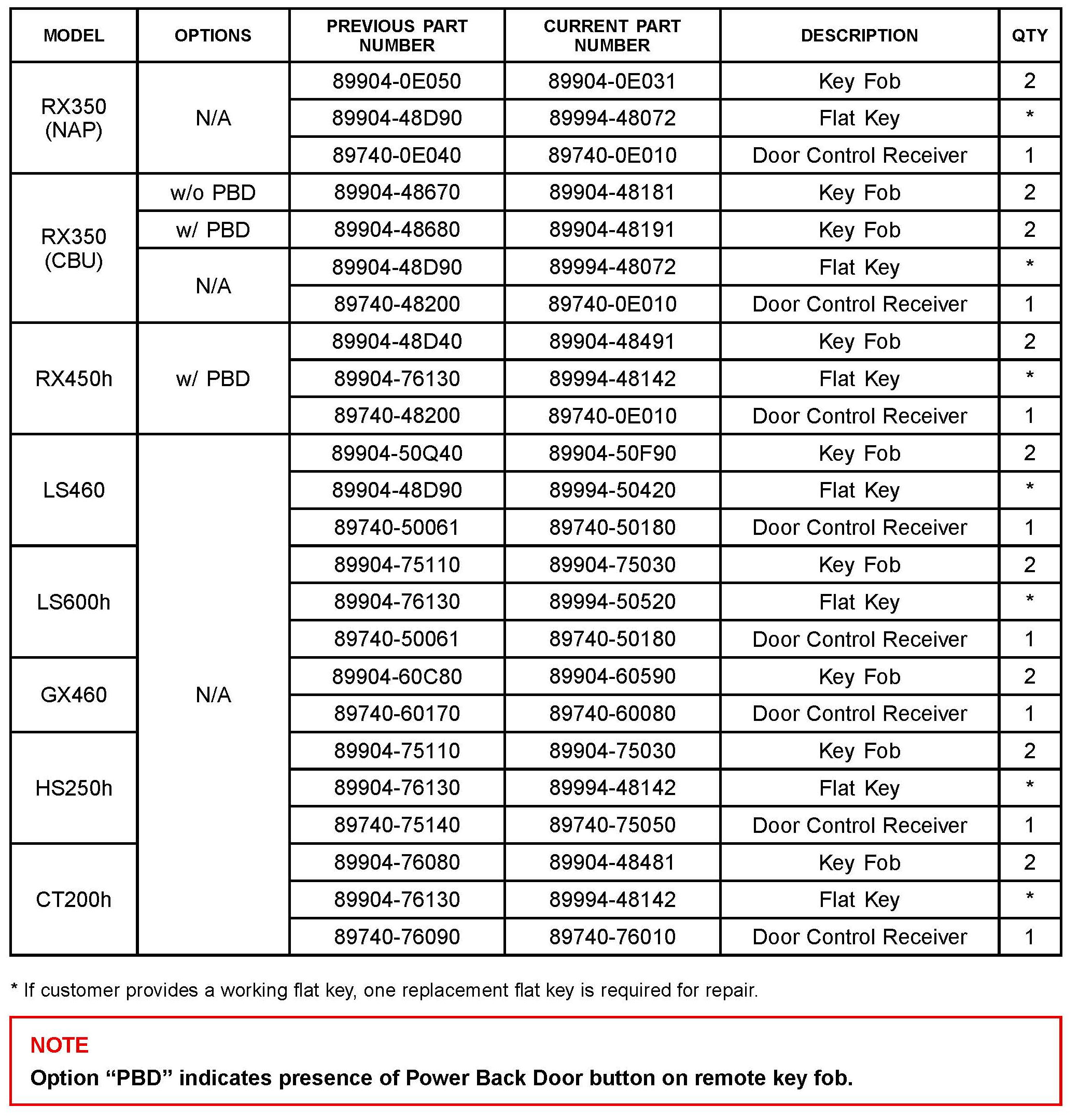 ^ Obtain ALL customer's registered keys and check FCC ID's printed on them. If keys have FCC ID's ending in "AB", vehicle qualifies for repair.