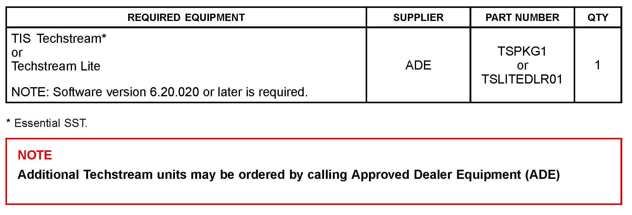 1. Install updated Door Control Receiver. Refer to the Technical Information System (TIS) applicable model and model year Repair Manual: