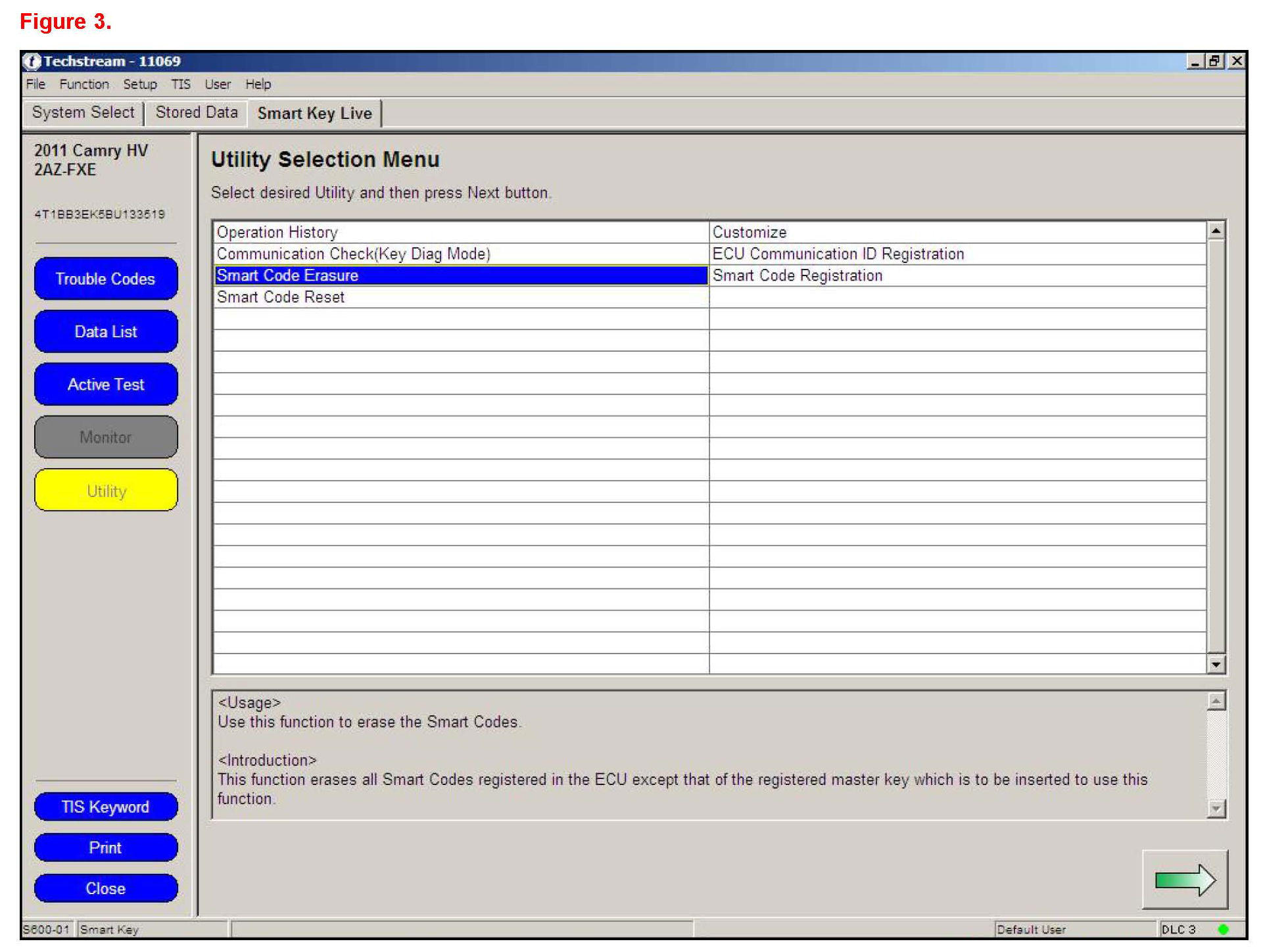 Some 2011 and 2012 Lexus models may exhibit a condition where the Smart Key system is inoperative when another vehicle's Smart key is in or near the vehicle. The following functions may also be affected: wireless remote operation, Smart access, and Smart start. The combination meter multi-information display may show the message: "Key not detected" when attempting to start vehicle and when driving. Follow the repair procedures in this TSIB to address this condition.