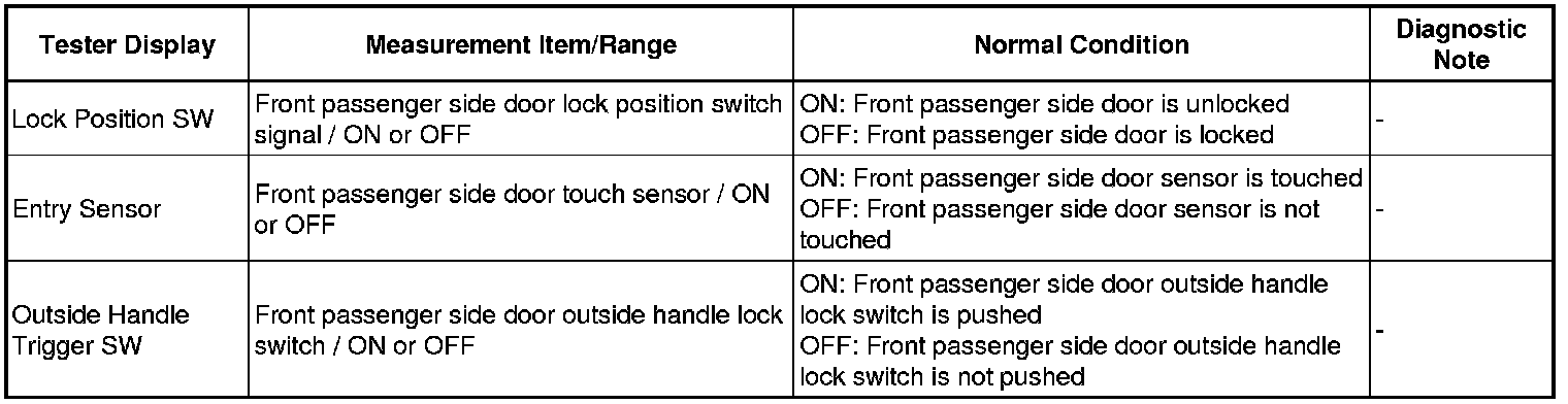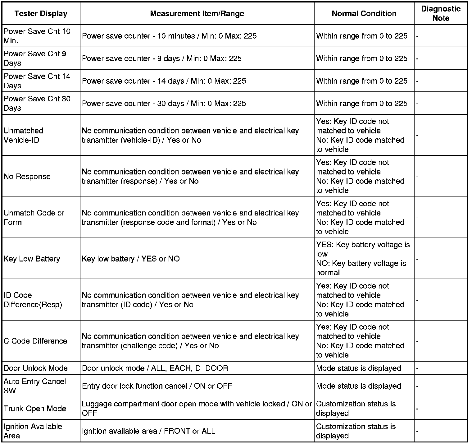 DOOR LOCK: SMART ACCESS SYSTEM WITH PUSH-BUTTON START: DATA LIST / ACTIVE TEST