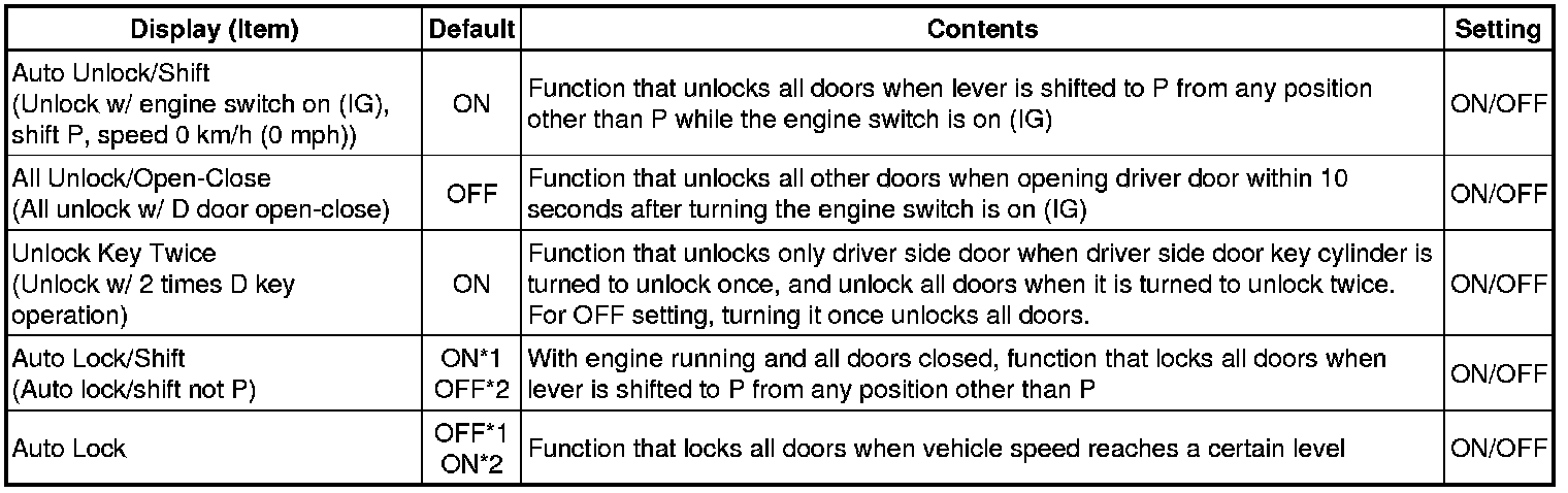 DOOR LOCK: POWER DOOR LOCK CONTROL SYSTEM: CUSTOMIZE PARAMETERS