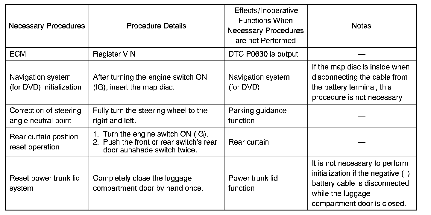 Procedures Necessary When Battery Terminal Is Disconnected/Reconnected