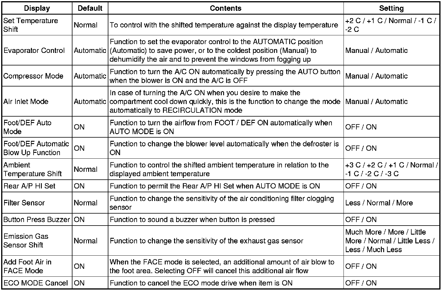 AIR CONDITIONING: AIR CONDITIONING SYSTEM: CUSTOMIZE PARAMETERS