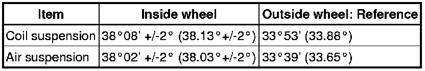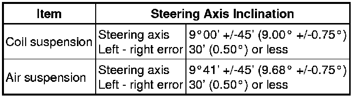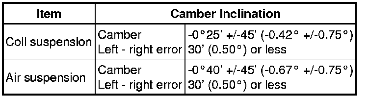 * The maximum tolerance of right and left difference for the camber is 30' or less.