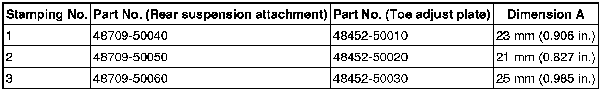 * If the values are not within the specified range, adjust the installation bolt holding the rear suspension member to the vehicle body, or the bolt holding the upper control arm and rear suspension arm so that the values fall within the specified range.