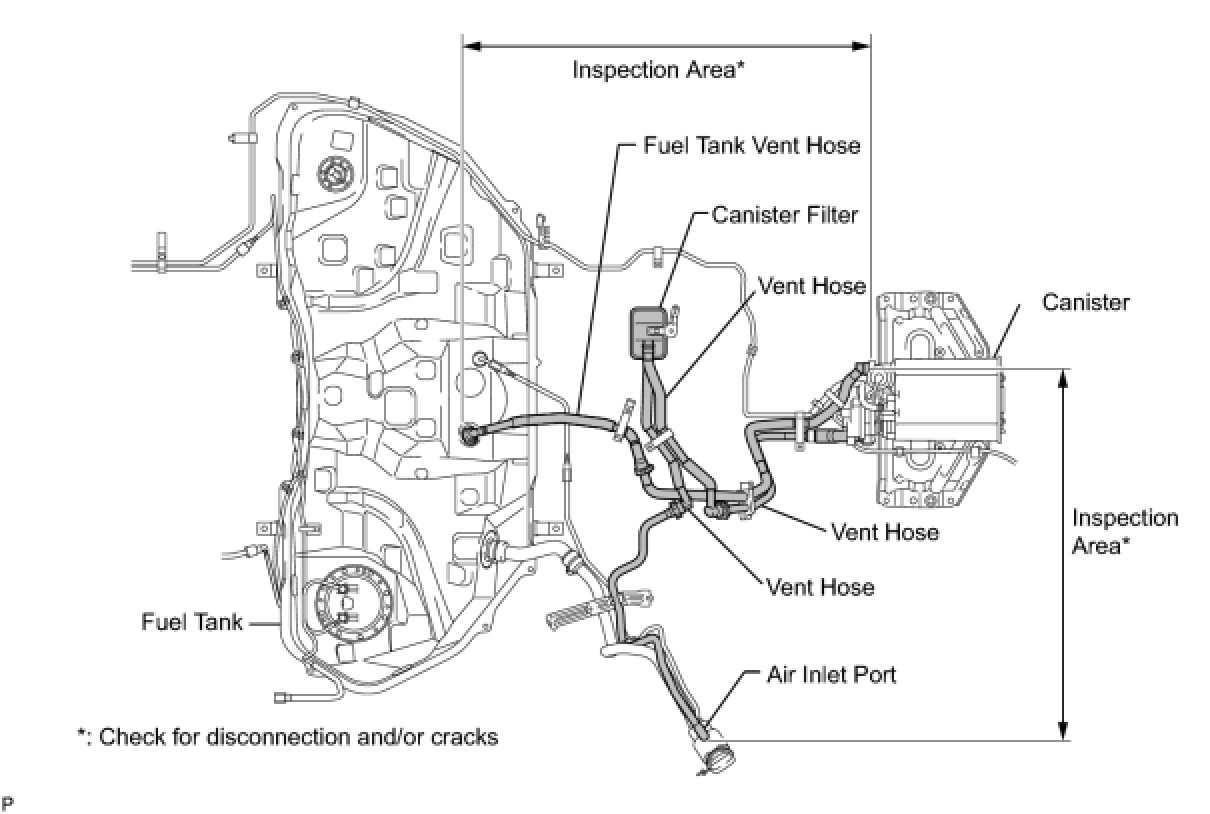 * When replacing the canister, check the canister pump module interior and related pipes for water, fuel and other liquids. If liquids are present, check for disconnections and/or cracks in the following: 1) the pipe from the air inlet port to the canister pump module; 2) the canister filter; and 3) the fuel tank vent hose.