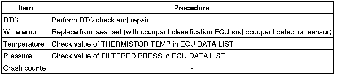 * If After Exchange is selected before the previous ECU data are stored in the Techstream, the display screen returns to CONDITION SELECT ECU: Occupant Detect.