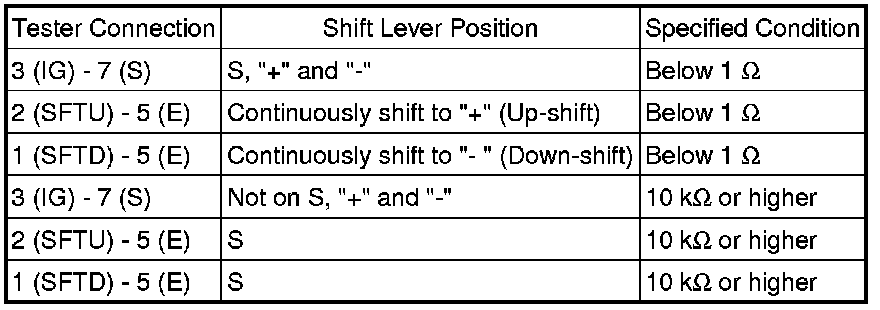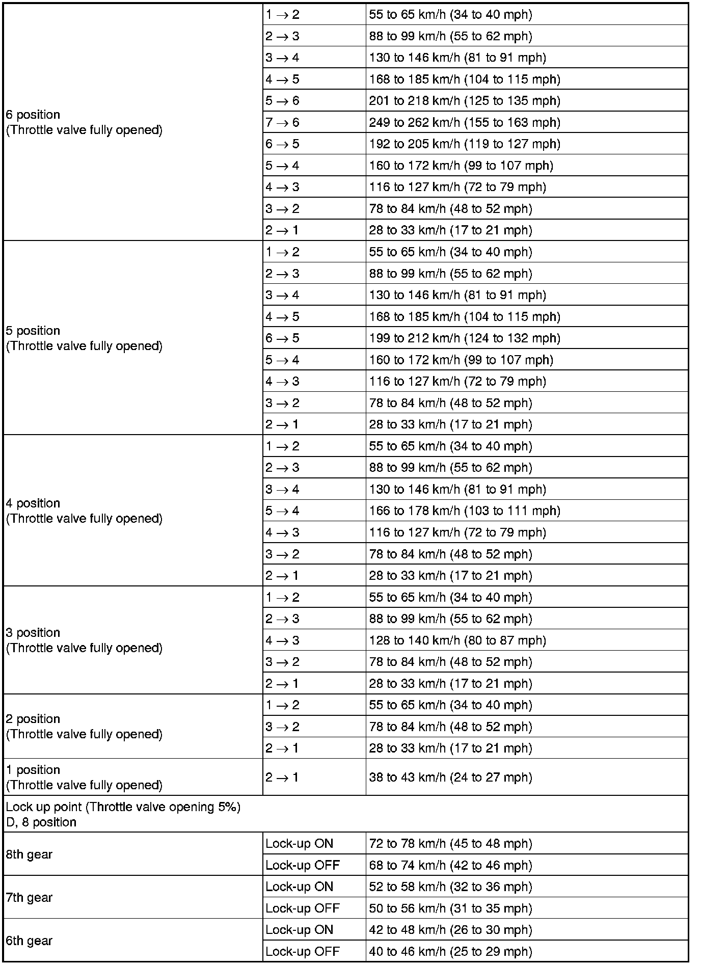 * All shift point values indicated in the above tables are actual values. Therefore, if checking a shift point with a chassis dynamometer, keep in mind that there is a range of error in the chassis dynamometer indication.
