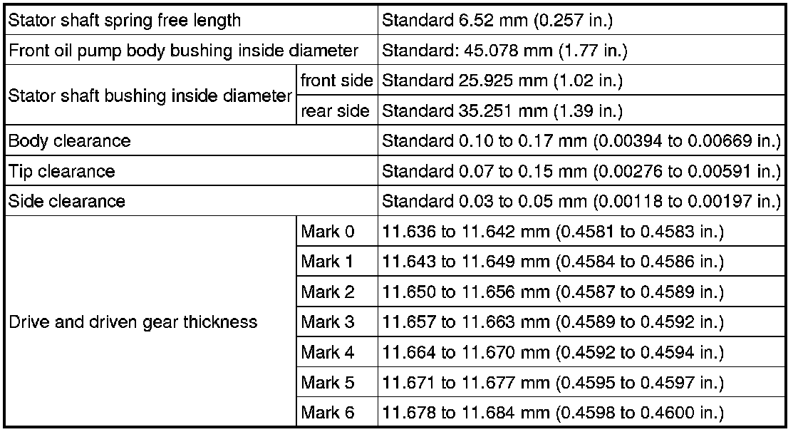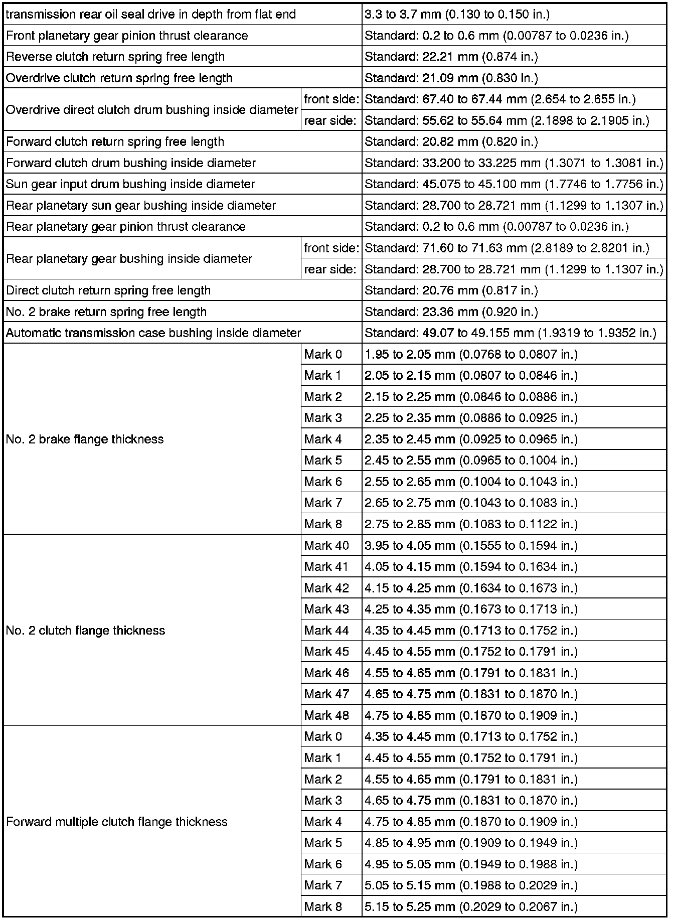 SERVICE SPECIFICATIONS: AA80F AUTOMATIC TRANSMISSION: SERVICE DATA
