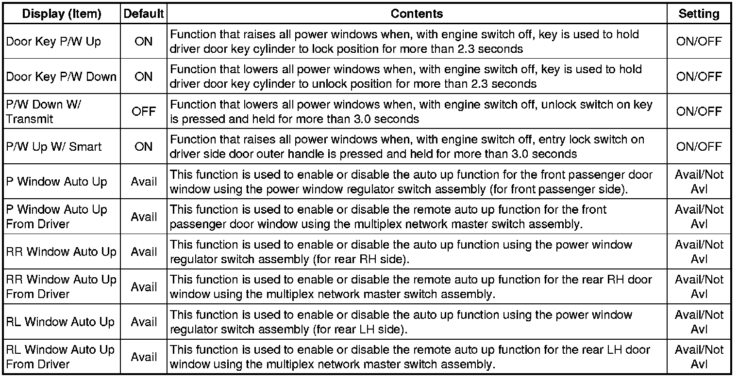 WINDSHIELD / WINDOWGLASS: POWER WINDOW CONTROL SYSTEM: CUSTOMIZE PARAMETERS