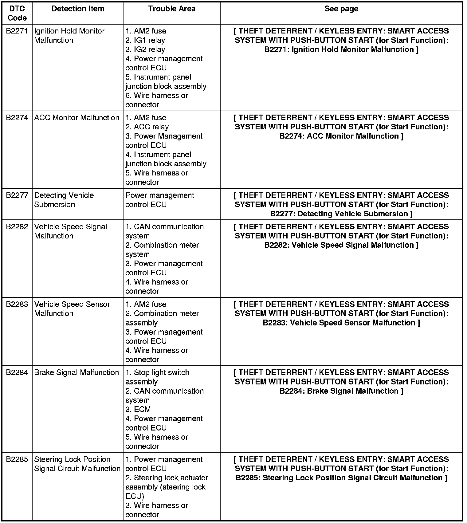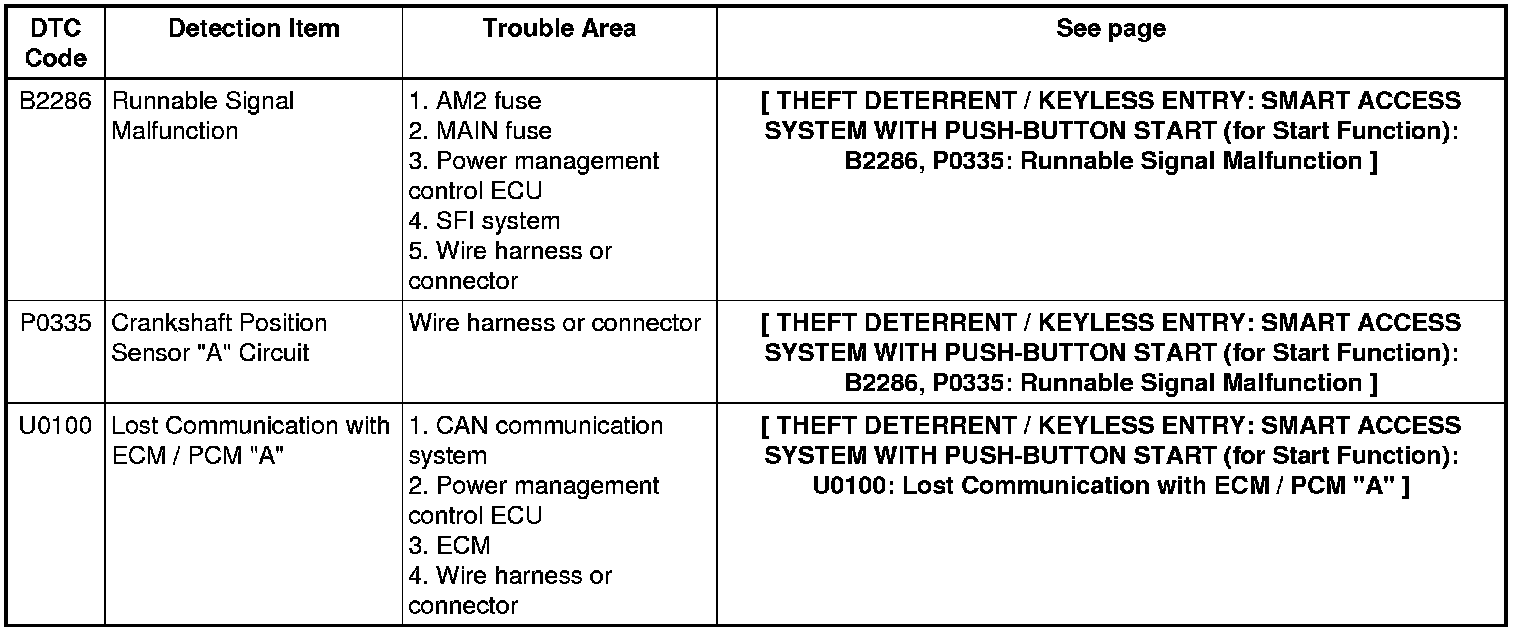 Home >> Lexus >> 2012 >> RX 350 AWD V6-3.5L (2GR-FE) >> Repair and Diagnosis >> A L L Diagnostic Trouble Codes ( DTC ) >> Testing and Inspection >> Diagnostic Trouble Code Descriptions >> Smart Access System With Push-Button Start (For Start Function)