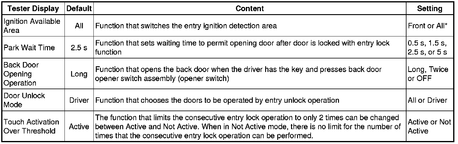 THEFT DETERRENT / KEYLESS ENTRY: SMART ACCESS SYSTEM WITH PUSH-BUTTON START (for Entry Function): CUSTOMIZE PARAMETERS