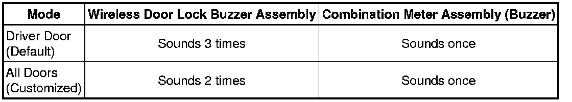 (c) The certification ECU (smart key ECU assembly) sounds the buzzers of the wireless door lock buzzer assembly and combination meter assembly (buzzer) to inform the user that the mode has been changed.