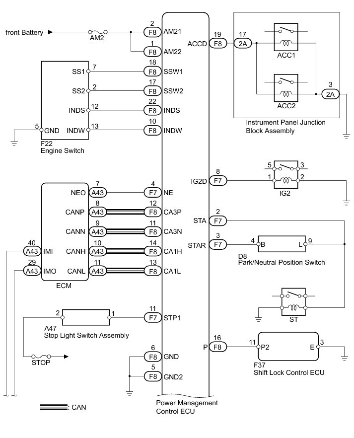 (a) If there is a malfunction in the stop light switch or STOP fuse, their signals may not be correctly transmitted to the power management control ECU. This may result in the engine not starting even if the engine switch is pressed while the brake pedal is depressed and the shift lever is in P.