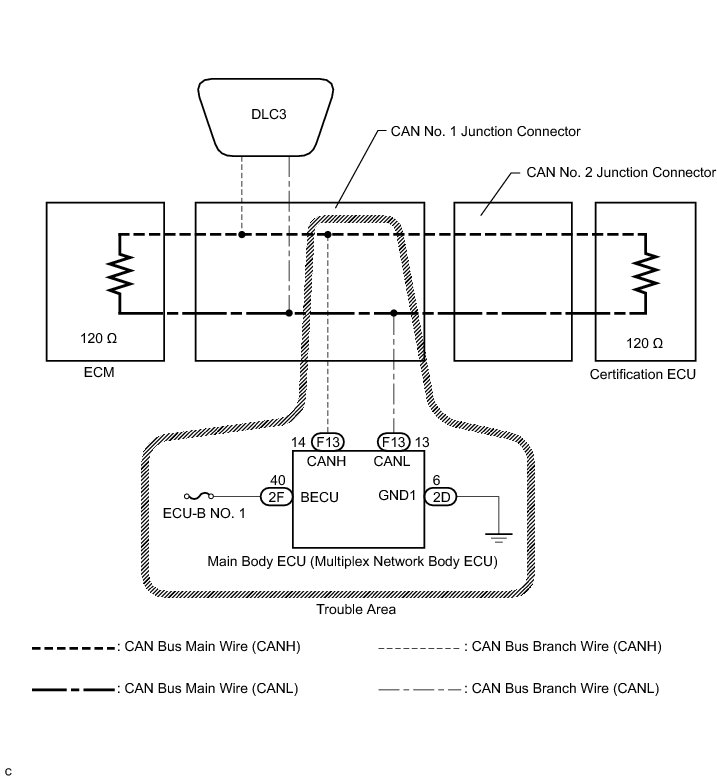 1. CHECK CAN BUS WIRE FOR DISCONNECTION (MAIN BODY ECU BRANCH WIRE)