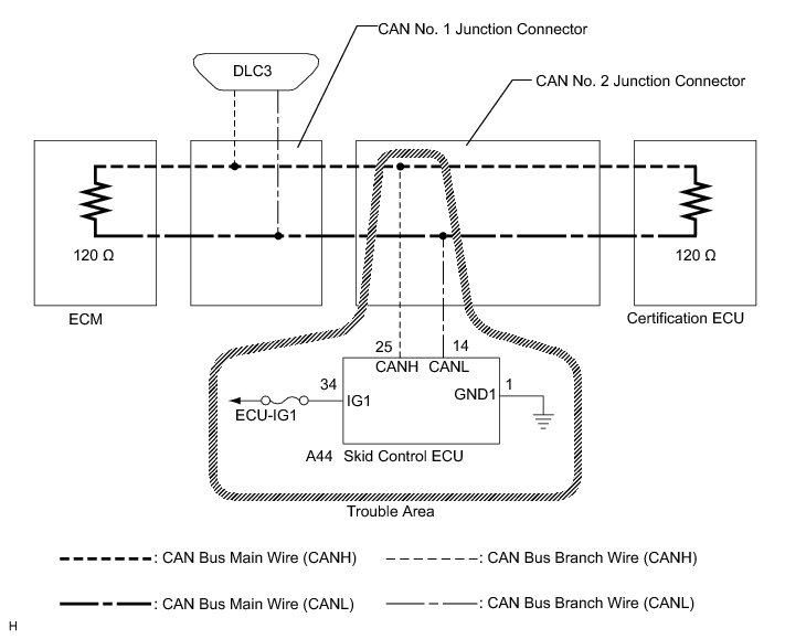 1. CHECK CAN BUS WIRE FOR DISCONNECTION (SKID CONTROL ECU BRANCH WIRE)