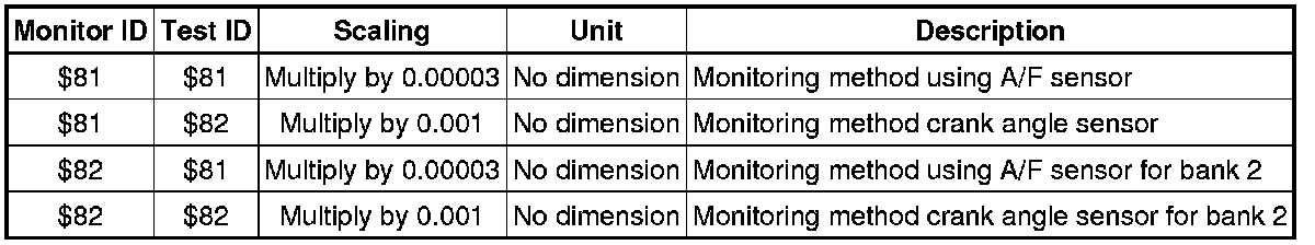 If you use a generic scan tool, multiply the test value by the scaling value listed below.