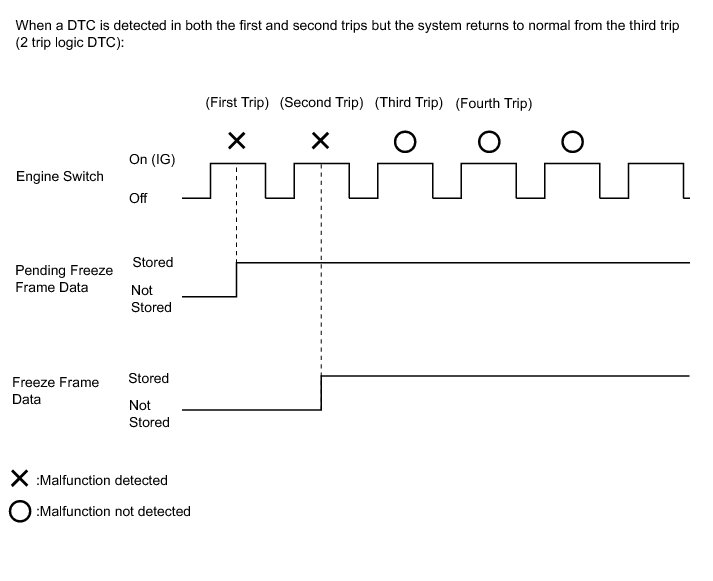 * With previous pending freeze frame data stored, if pending freeze frame data is newly stored when a 2 trip DTC is detected in the first trip, the old freeze frame data will be replaced with the new one of the newly detected DTC in the next trip.