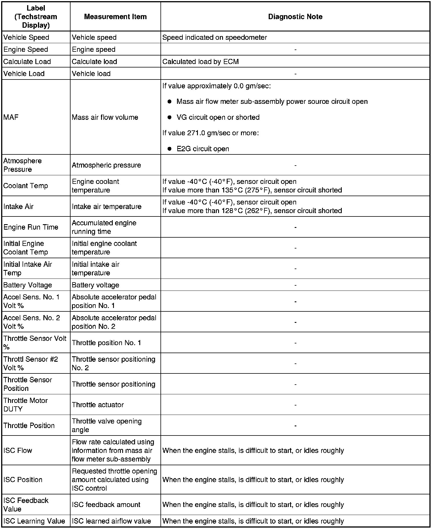 2GR-FE ENGINE CONTROL: SFI SYSTEM: FREEZE FRAME DATA