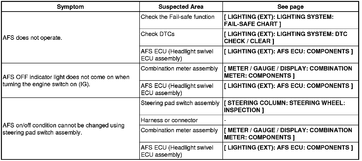LIGHTING (EXT): LIGHTING SYSTEM: PROBLEM SYMPTOMS TABLE