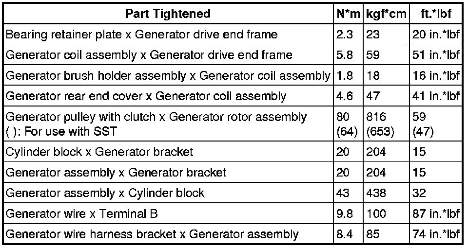 SPECIFICATIONS: 2GR-FE BATTERY / CHARGING: TORQUE SPECIFICATIONS