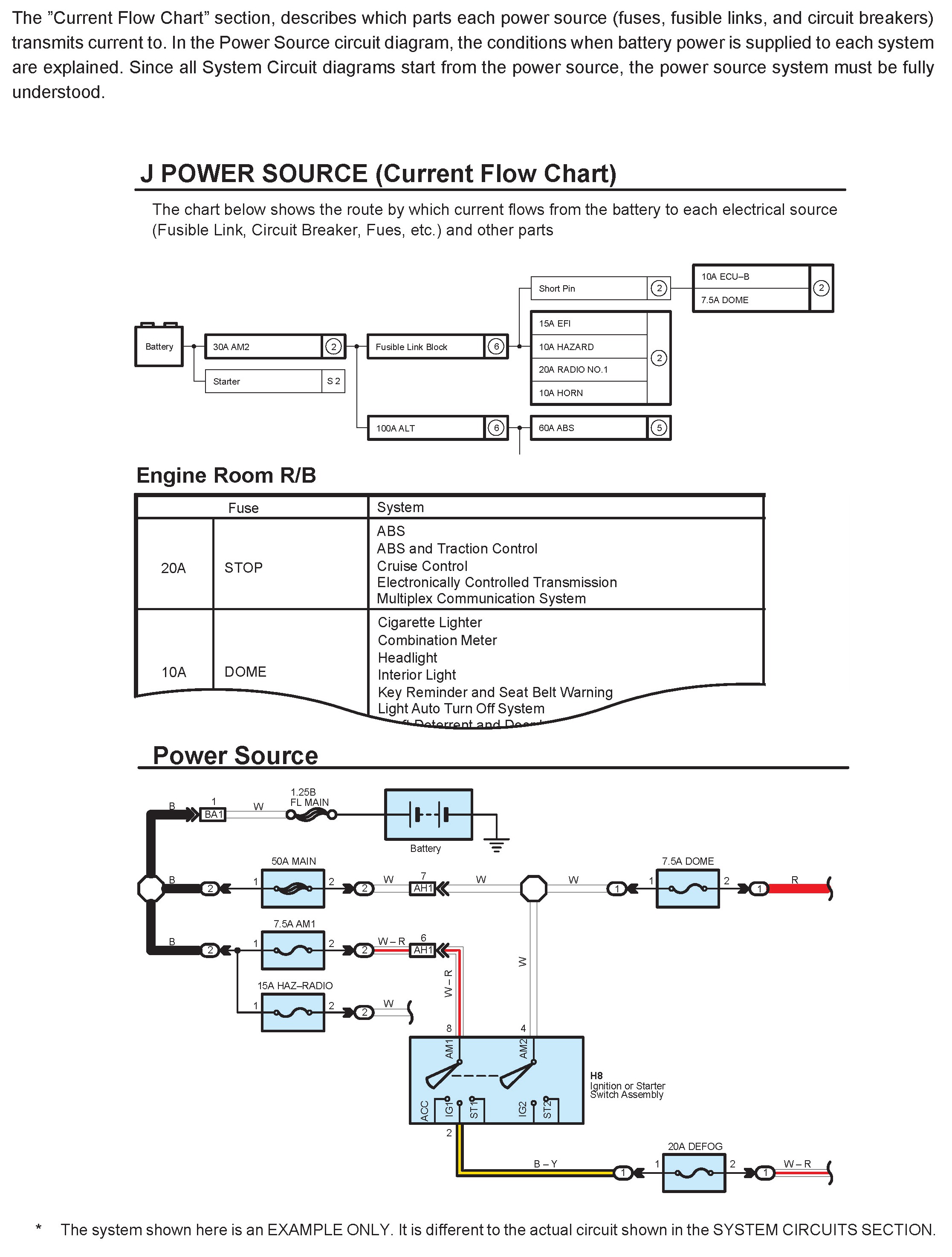 The actual wiring of each system circuit is shown from the point where the power source is received from the battery as far as each ground point. (All circuit diagrams are shown with the switches in the OFF position.)