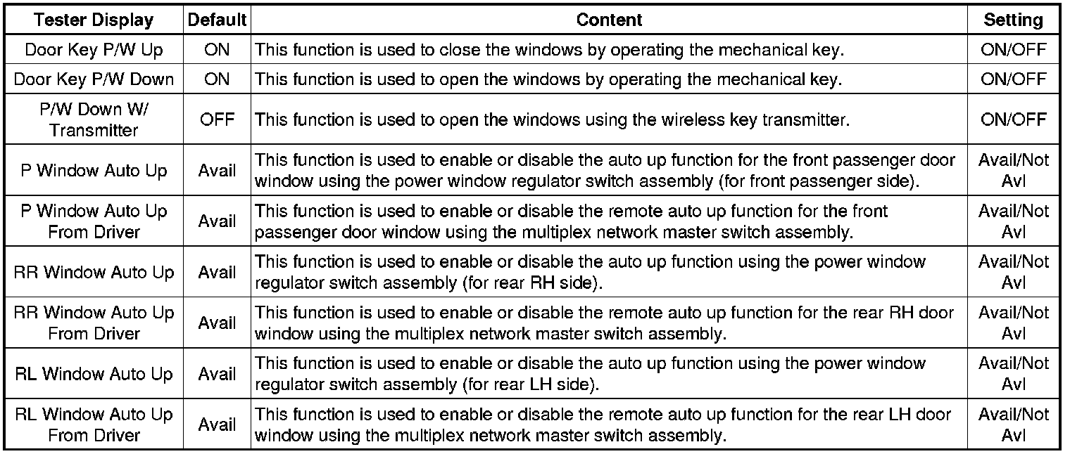 WINDOW / GLASS: POWER WINDOW CONTROL SYSTEM: CUSTOMIZE PARAMETERS