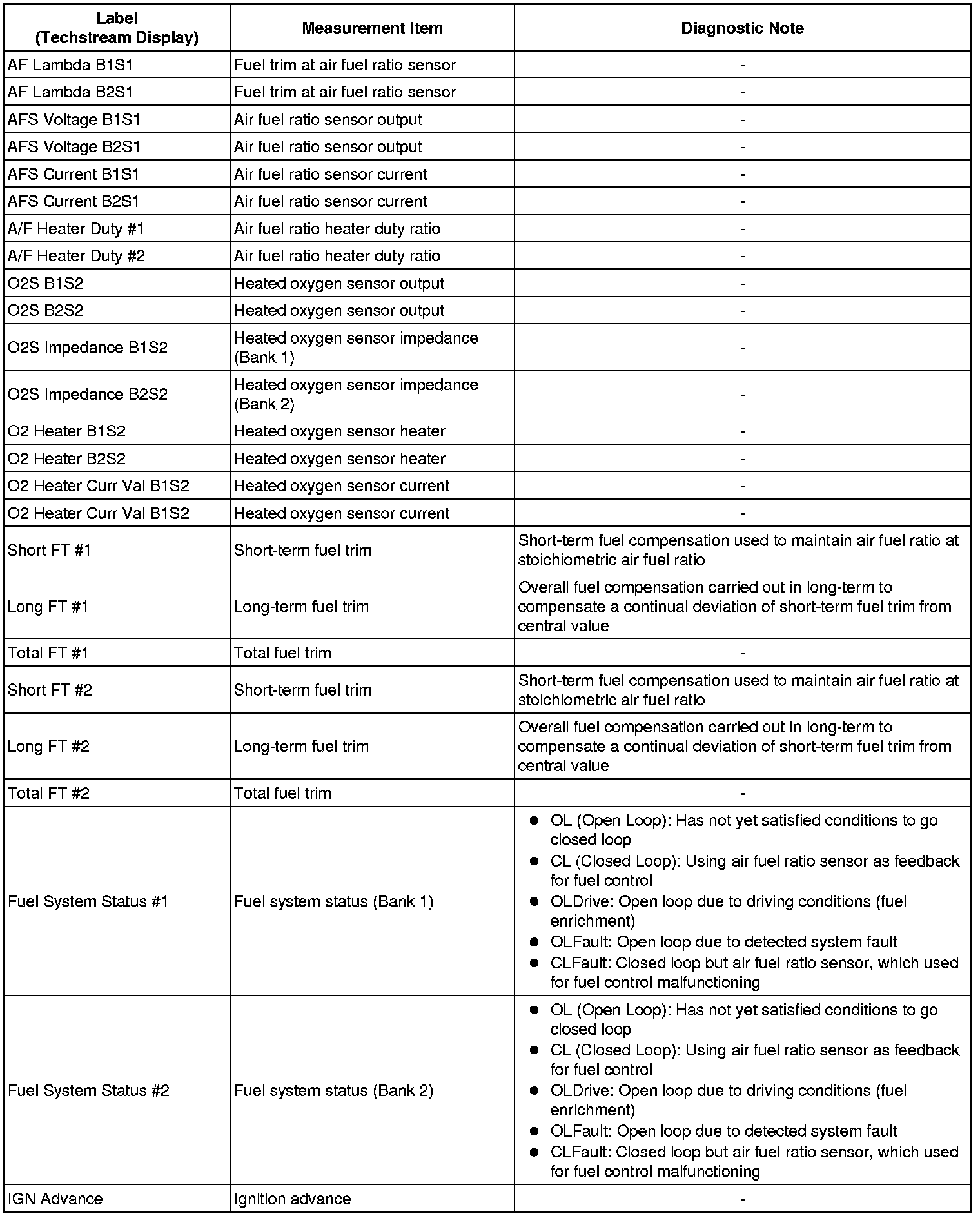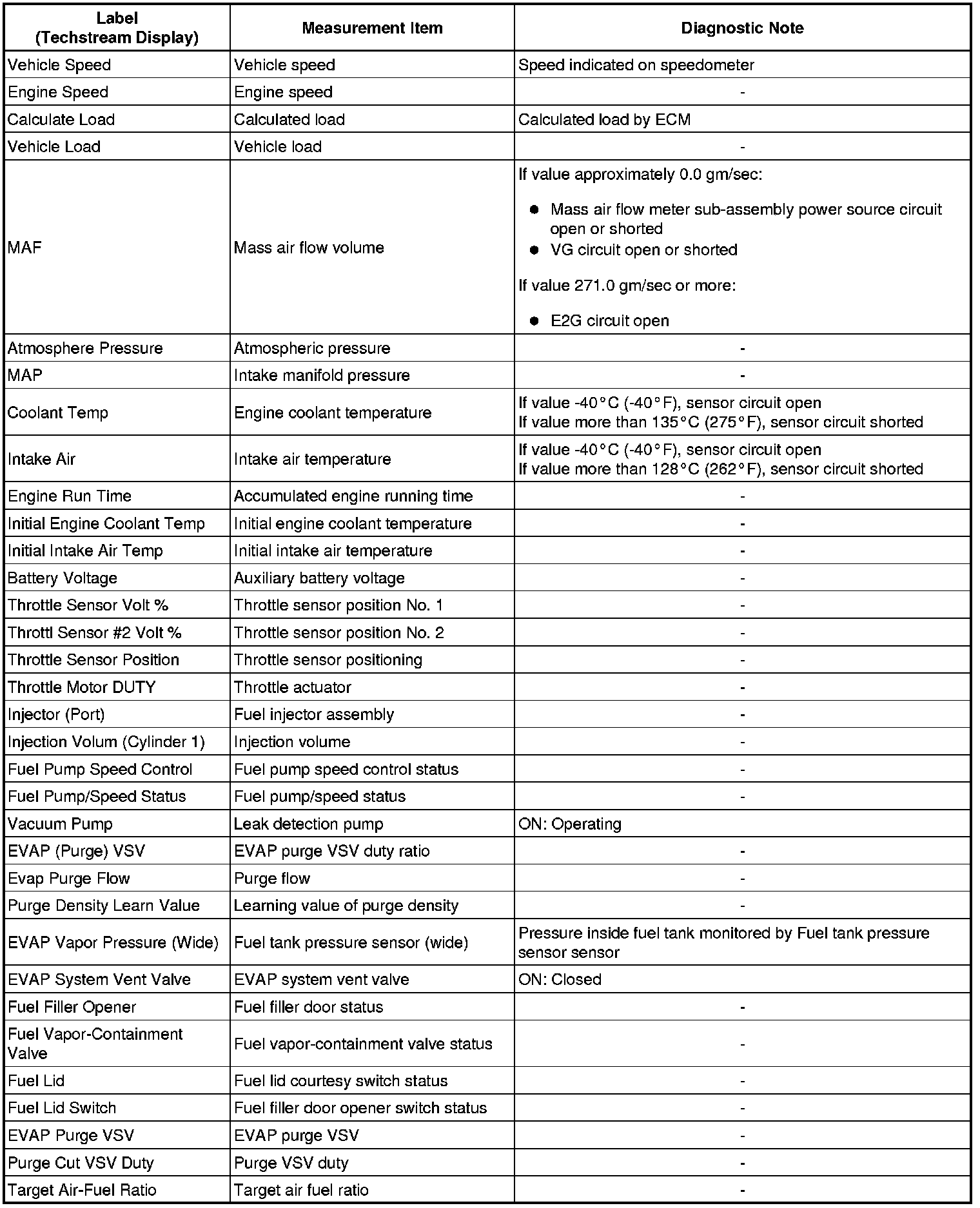 * The ECM records vehicle and driving condition information as freeze frame data the moment a DTC is stored. When troubleshooting, freeze frame data can be helpful in determining whether the vehicle was running or stopped, whether the engine was warmed up or not, whether the air fuel ratio was lean or rich, as well as other data recorded at the time of a malfunction.