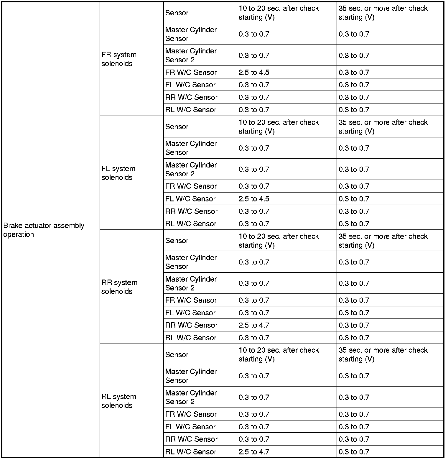 SPECIFICATIONS: BRAKE CONTROL / DYNAMIC CONTROL SYSTEMS: SERVICE DATA