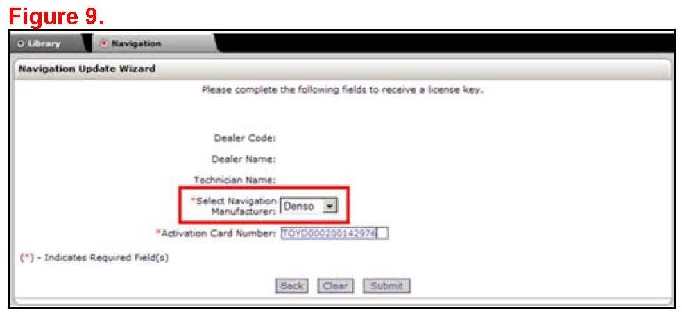 6. Select Denso from the Select Navigation Manufacturer dropdown.