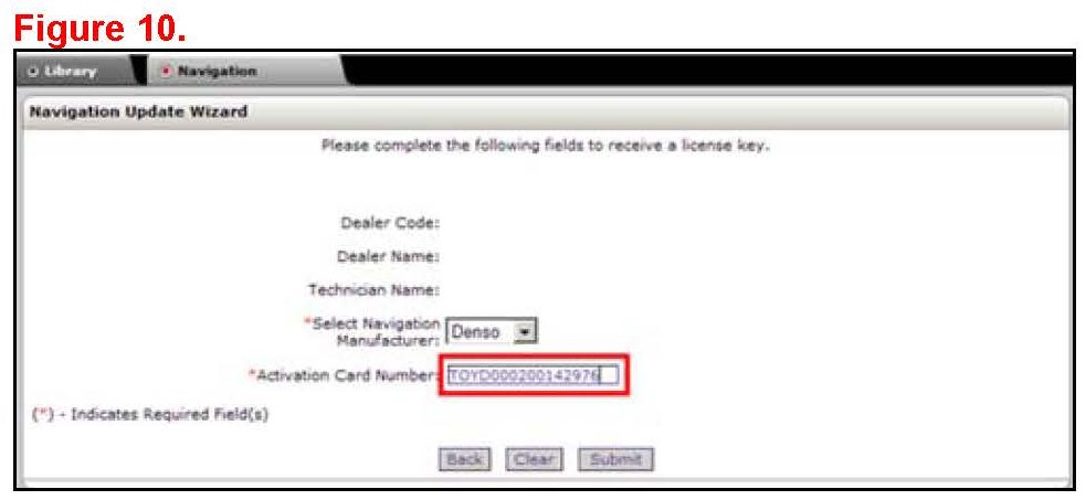 7. Enter the Activation Card number from the inside of the pamphlet (obtained from parts department).