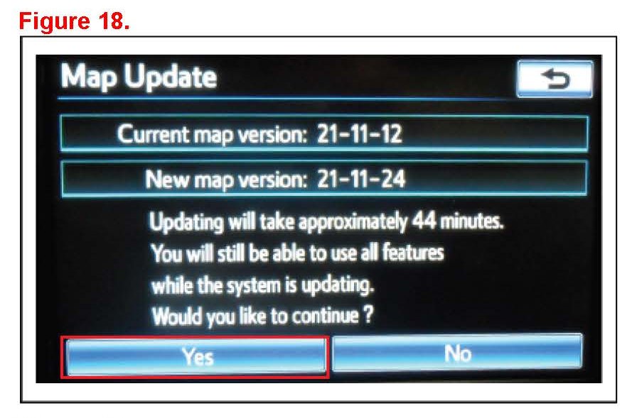 22. Update Navigation Head Unit Software. Click "Yes" on the "Software Update" screen to accept and begin this update.